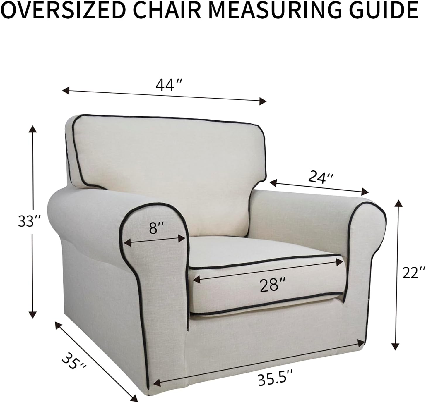 - SUPER DURABLE 3-LAYERS QUILTED FABRIC: Quilted from tear-resistant Microfiber fabric (polyester composition), this durable chair sofa furniture cover is composed of 3 layers with thick poly foam filling for extra comfort & softness. Our couch slipcovers are designed and ready-made to fit a variety of oversized chair sizes with seat width up to 28"