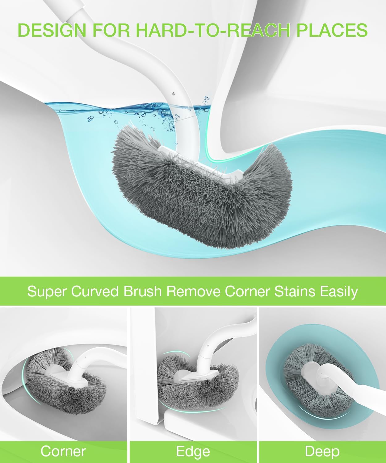 - Durable Bristles: Toilet bowl brush and holder with Sturdy-bristled deep clean the toilet, curved design angled can reaches under the toilet rim, inside the pipe.The toilet brush sits in its own holder and easy to store.