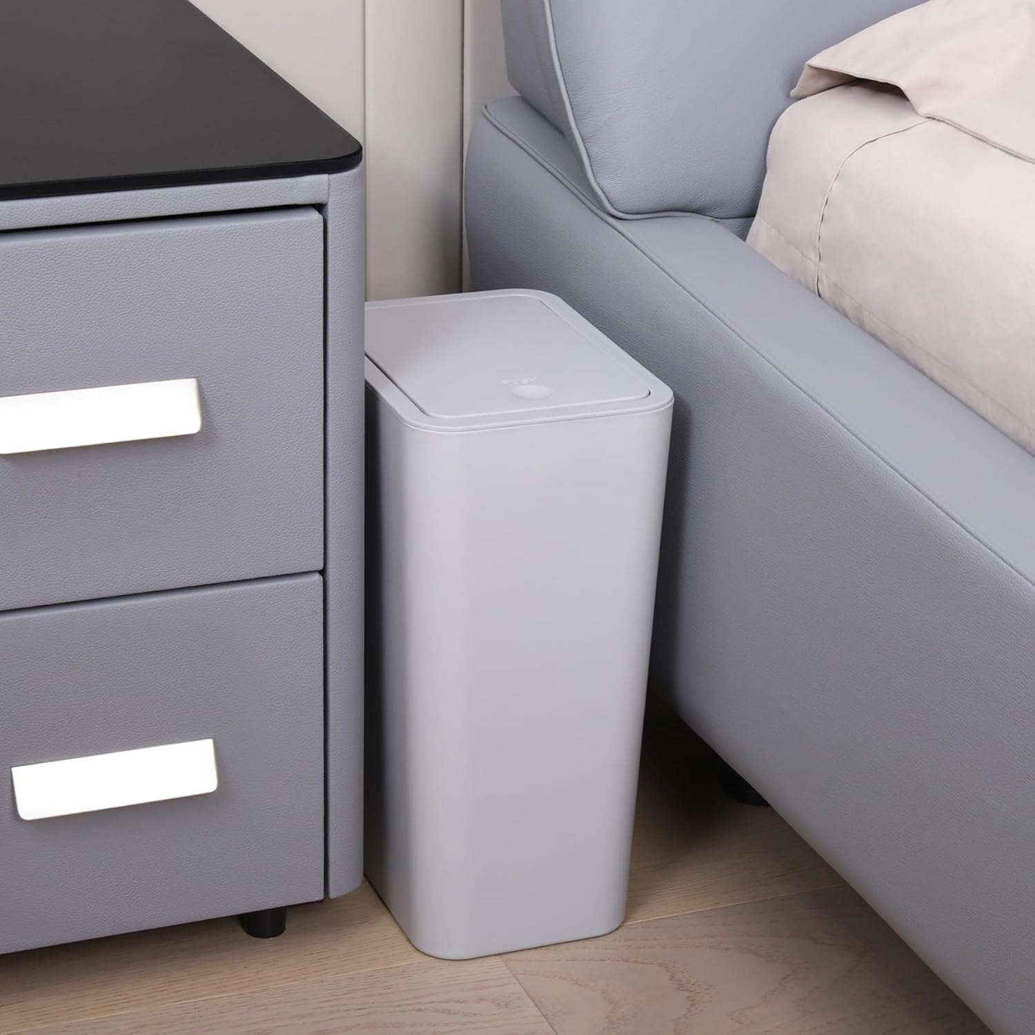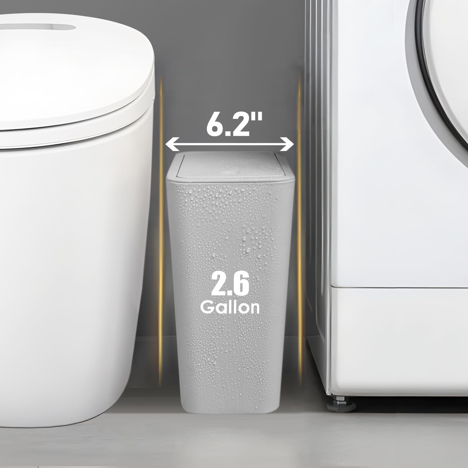 - Small Enough to Fit: The compact design of this trash can make it ideal for small spaces. The slim feature makes it fit perfectly into corners and narrow areas in kitchen, bedroom and bathroom, etc.