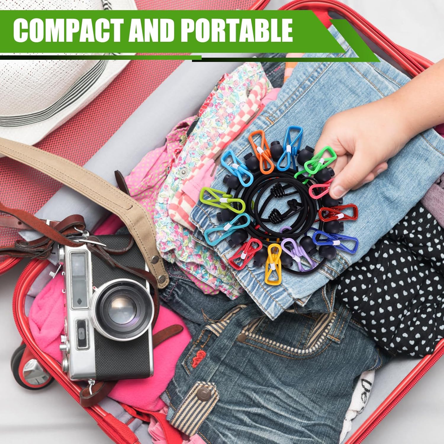 - [Innovative Design] The travel clothesline features 12 colorful clothesline clamps and 13 windproof, non-slip clamps, all designed with a positioning bead. Our sturdy elastic rope supports heavy clothing more effectively than other clotheslines.