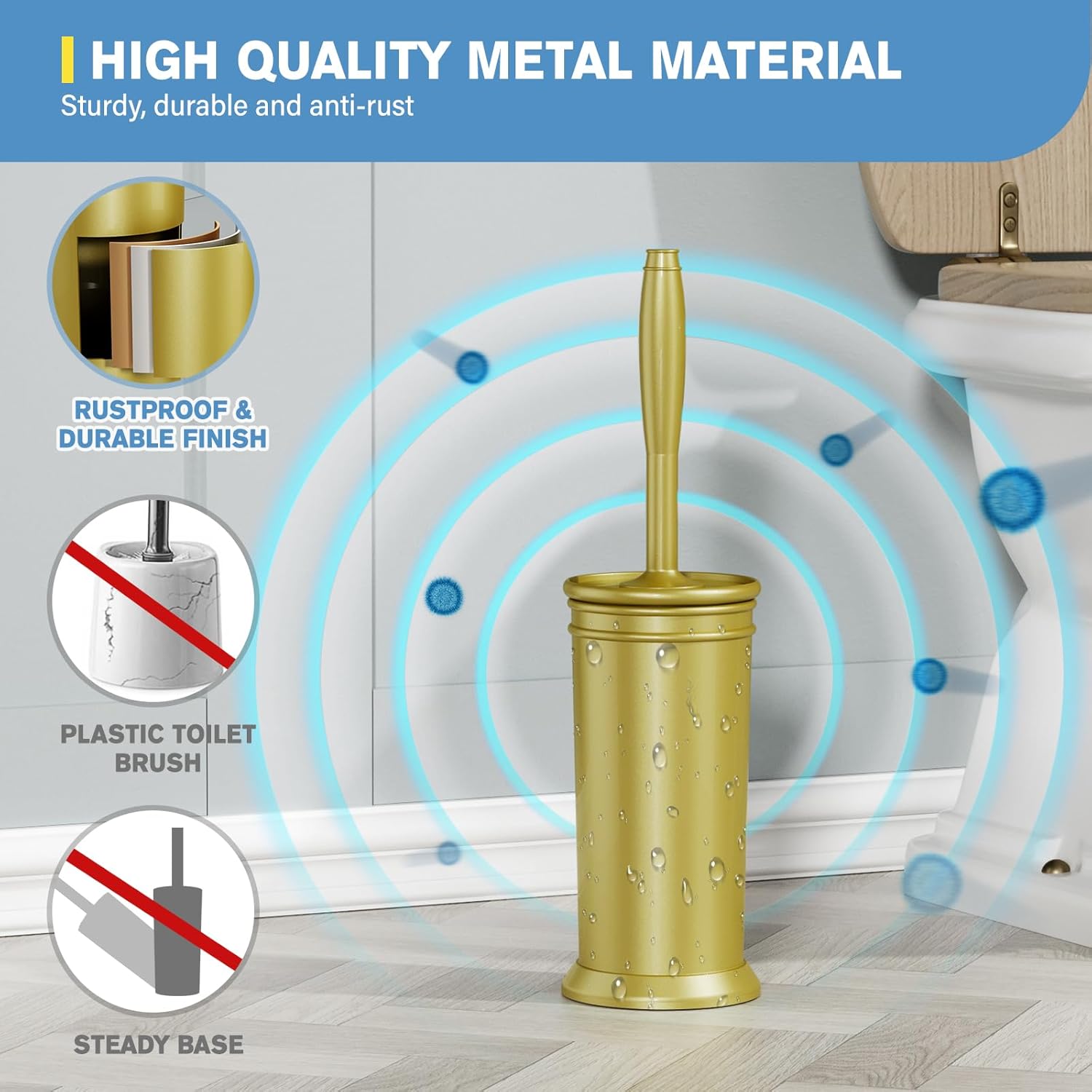 - UPGRADED ALUMINUM ALLOY MATERIAL:Aluminum Alloy toilet brush upgraded from the classic plastic toilet brush. This material adds weight to the toilet brush, helps to stand firmly, and also makes your bathroom look elegant and neat.