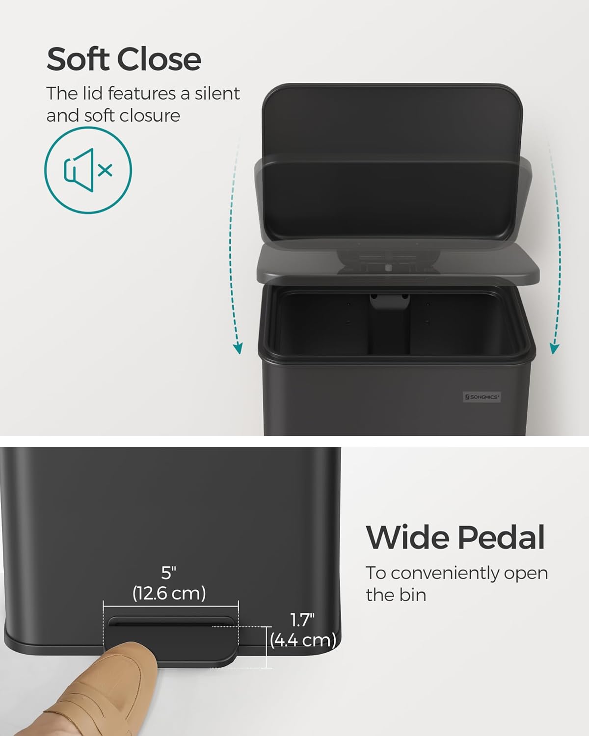 - [Soft Closure] The trash can features a slow, silent, and soft-close lid. No more dealing with loud clangs after useโenjoy a quieter and smoother disposal experience