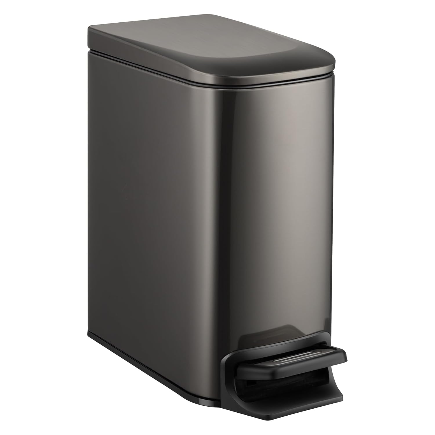 TIPGO Slim Bathroom Trash Can with Lid Soft Close, 6 Liter / 1.6 Gallon Stainless Steel Garbage Can with Removable Inner Bucket, Step Pedal, Small Trash Cans for Bedroom, Office, Kitchen (Black Gold)