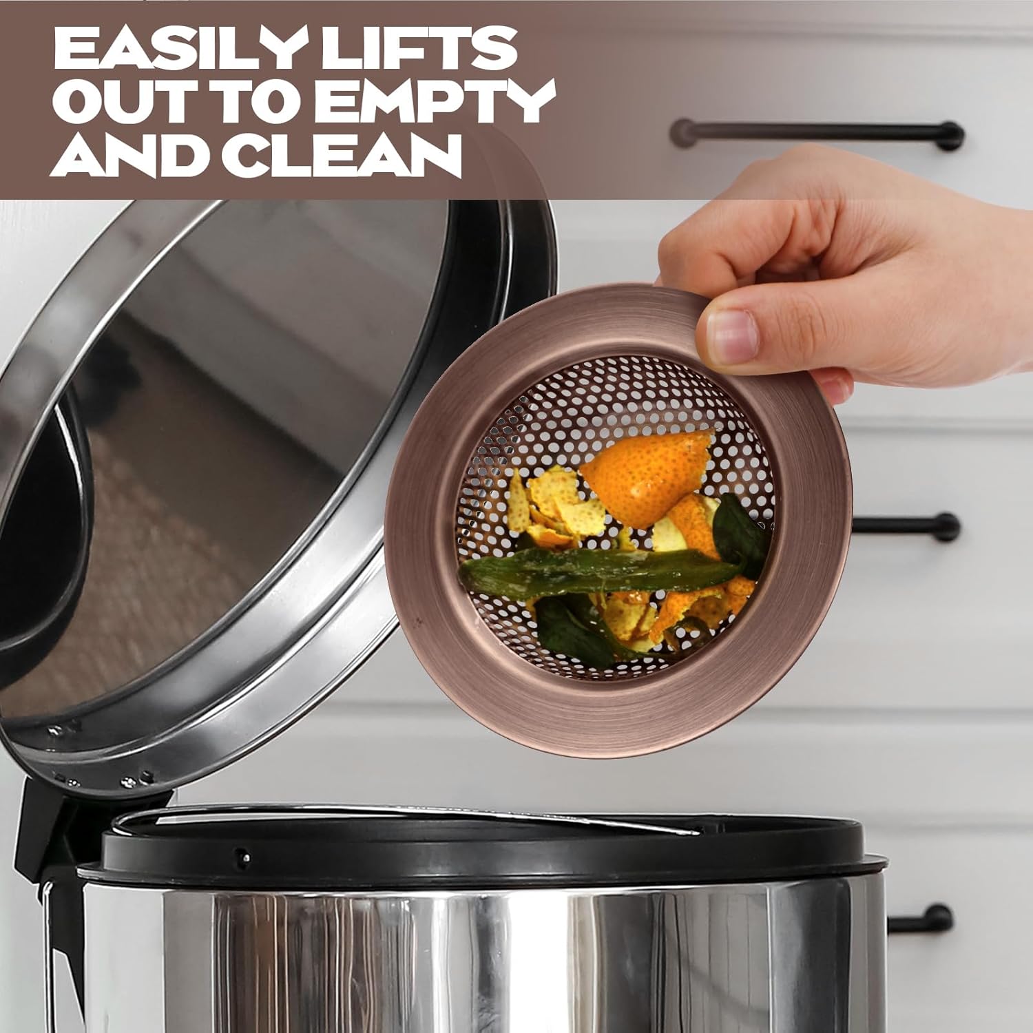 Retisee 2 Pcs Sink Strainer Stainless Steel Kitchen Sink Drain Strainer Basket Cover Mesh Hair Food Catcher, Large Wide Rim of 4.4 Diameter(Red Bronze)