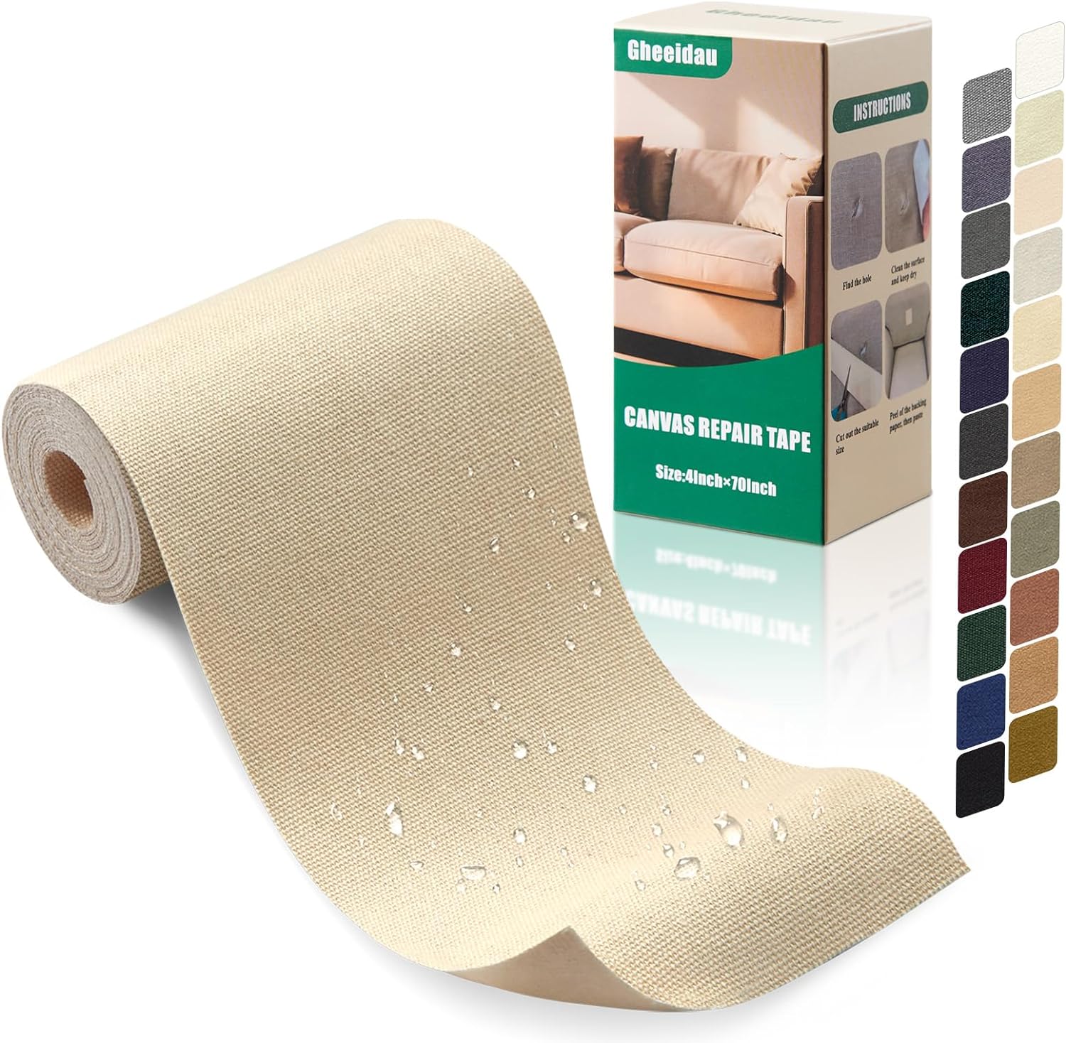 Canvas Repair Tape 4×70 Inch Waterproof Self-Adhesive Fabric Repair Patch for Repairing Boat Covers,Tents,Patio Umbrellas,Car Seats,Luggage,Sofas.(Beige)