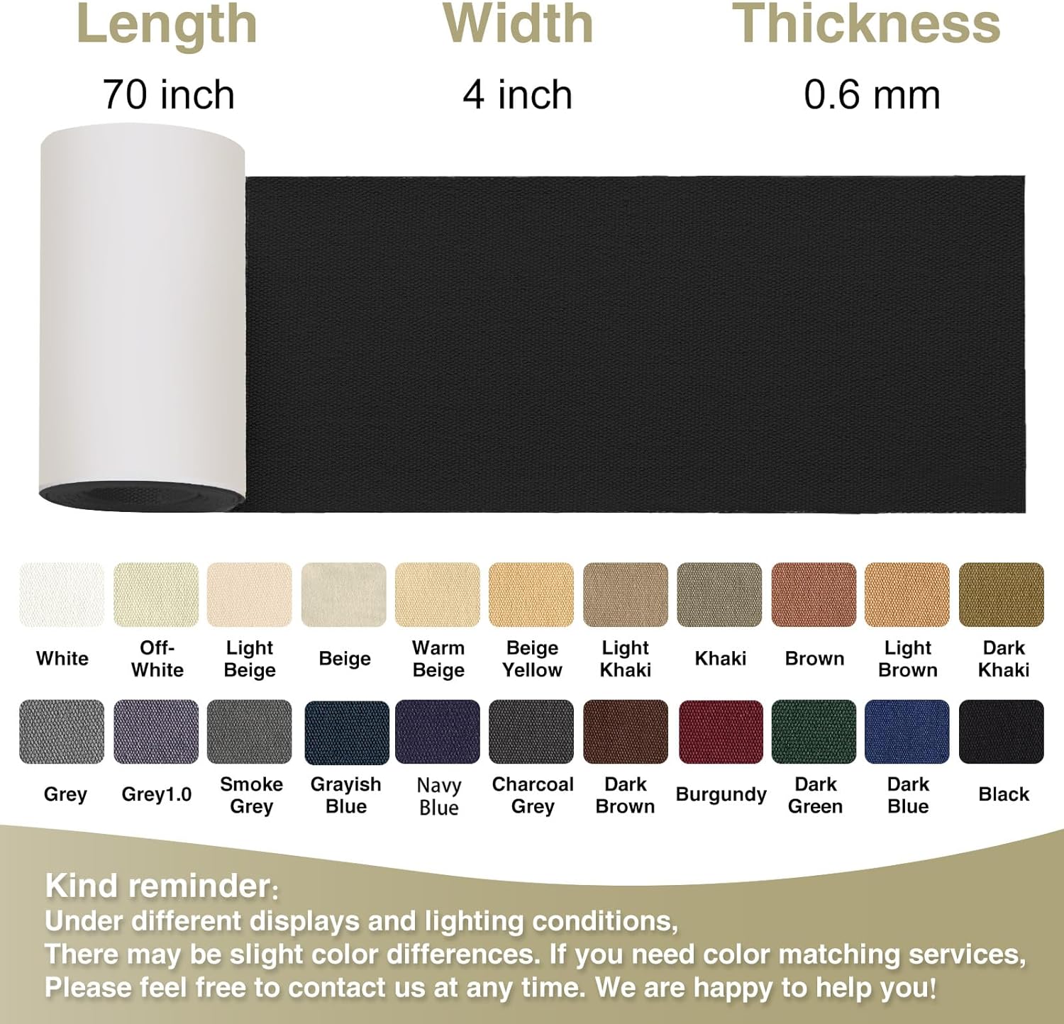 - Waterproof Cotton Canvas:Self-adhesive canvas outdoor repair tape is made of selected waterproof cotton canvas, strong texture, wear-resistant and scratch-resistant.0.6mm thickness is moderate, flexible, and can be tightly adhered to sofas, tents, and other indoor and outdoor items