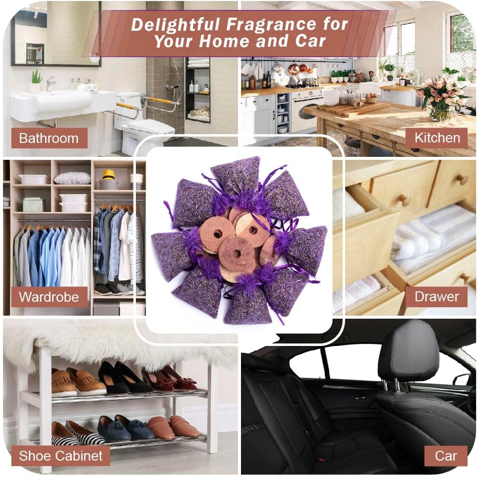 - Fragrance Sachets with dried lavender flower buds with American red cedar wood rings. No any artificial ingredients or any other chemical substances.