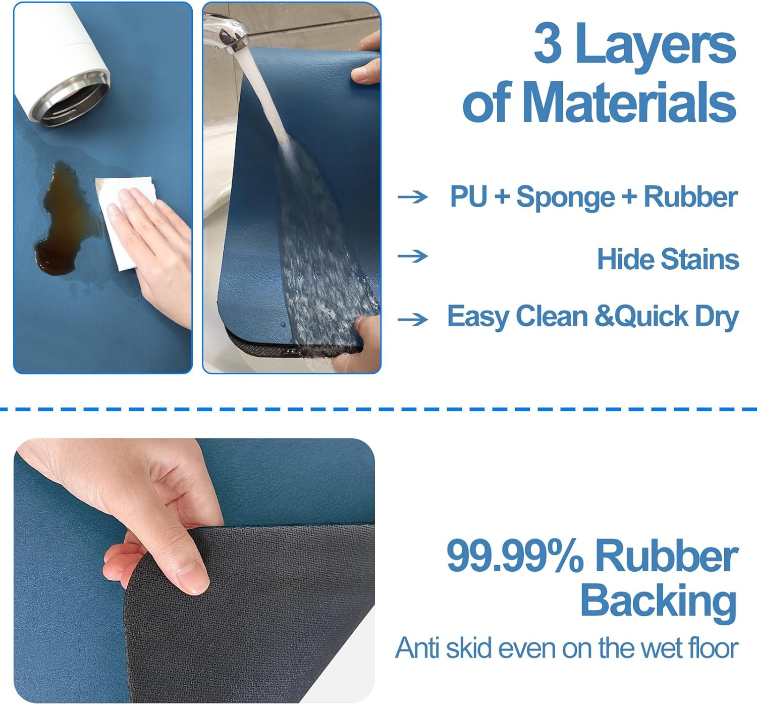 Dish Drying Mat for Kitchen Counter, 17"x31.5" Dish Drying Pad with Non-slip Rubber Backed, Hide Stain Anti Absorbent for Kitchen Counter, Drying Mat for Coffee Machine Dish Rack (Blue)