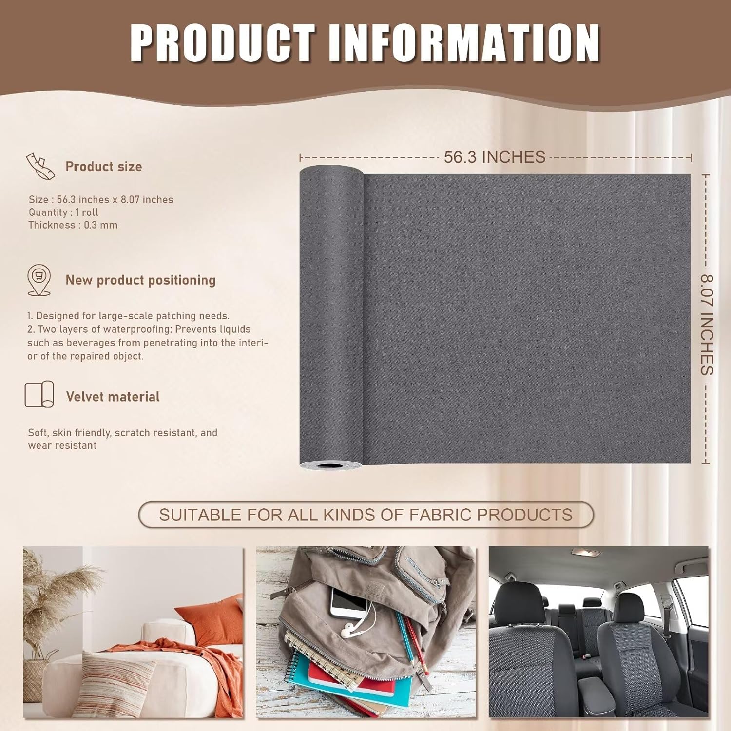 - Extra-Large Size: This microfiber couch repair kit measures 8.07 inches x 56.30 inches, with a thickness of 0.3mm.