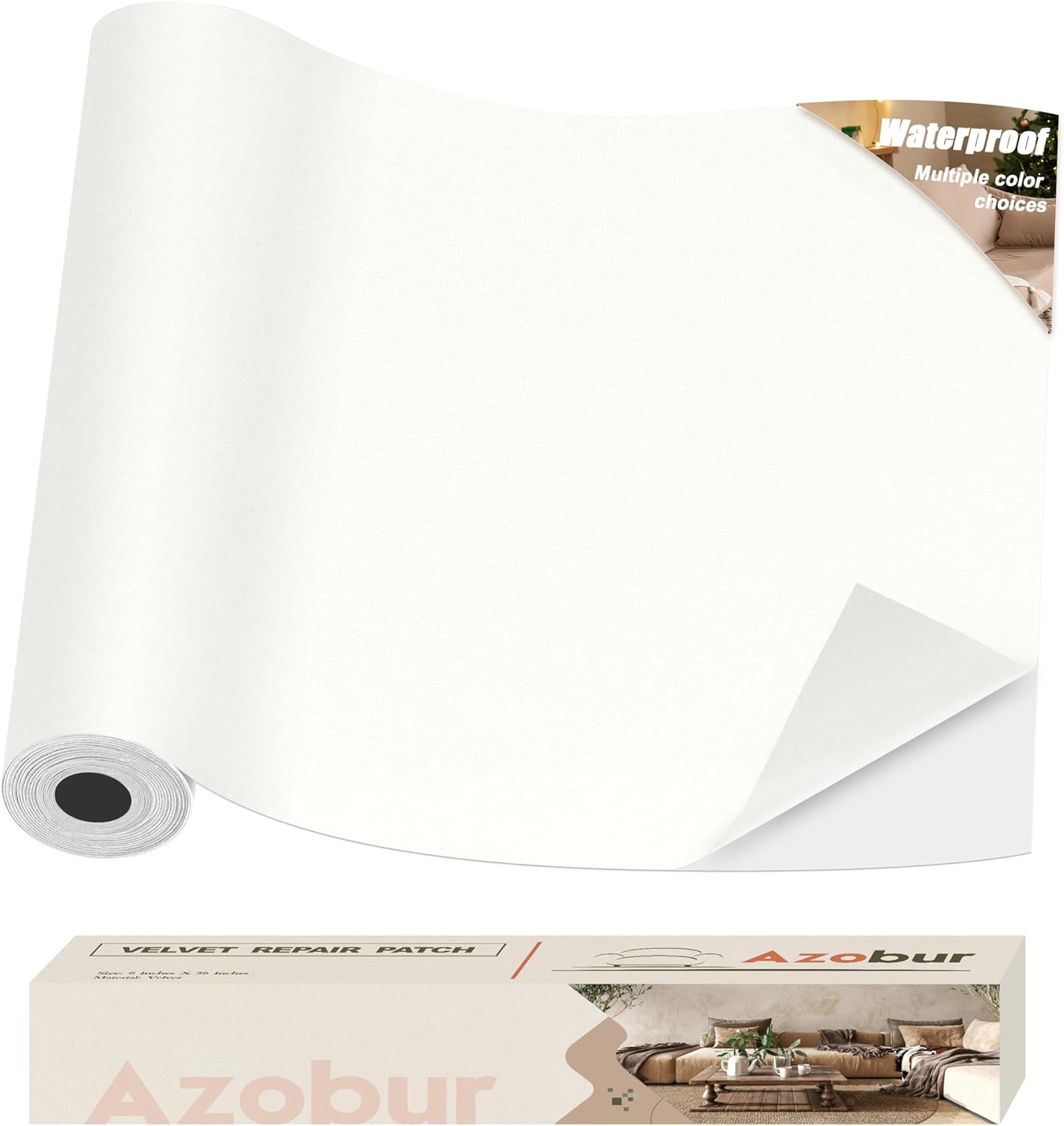 Azobur Couch Patches, Extra-Large Durable Fabric Tape, Ideal for Automotive Upholstery Repair, Waterproof, Self-Adhesive, Quickly Fix Sofas, Car Interiors, and Other Fabric Items (White)