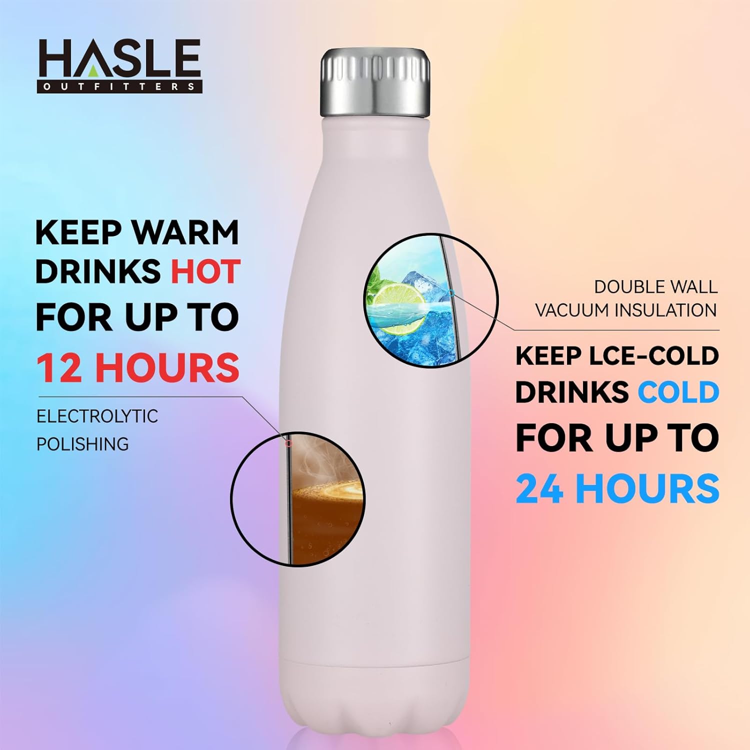 HASLE OUTFITTERS 17oz Stainless Steel Water Bottles, Vacuum Insulated Water Bottles Double Walled Powder Coated Reusable Metal Sports Water Bottles Keep Drinks Hot and Cold, Pink, 1Pack