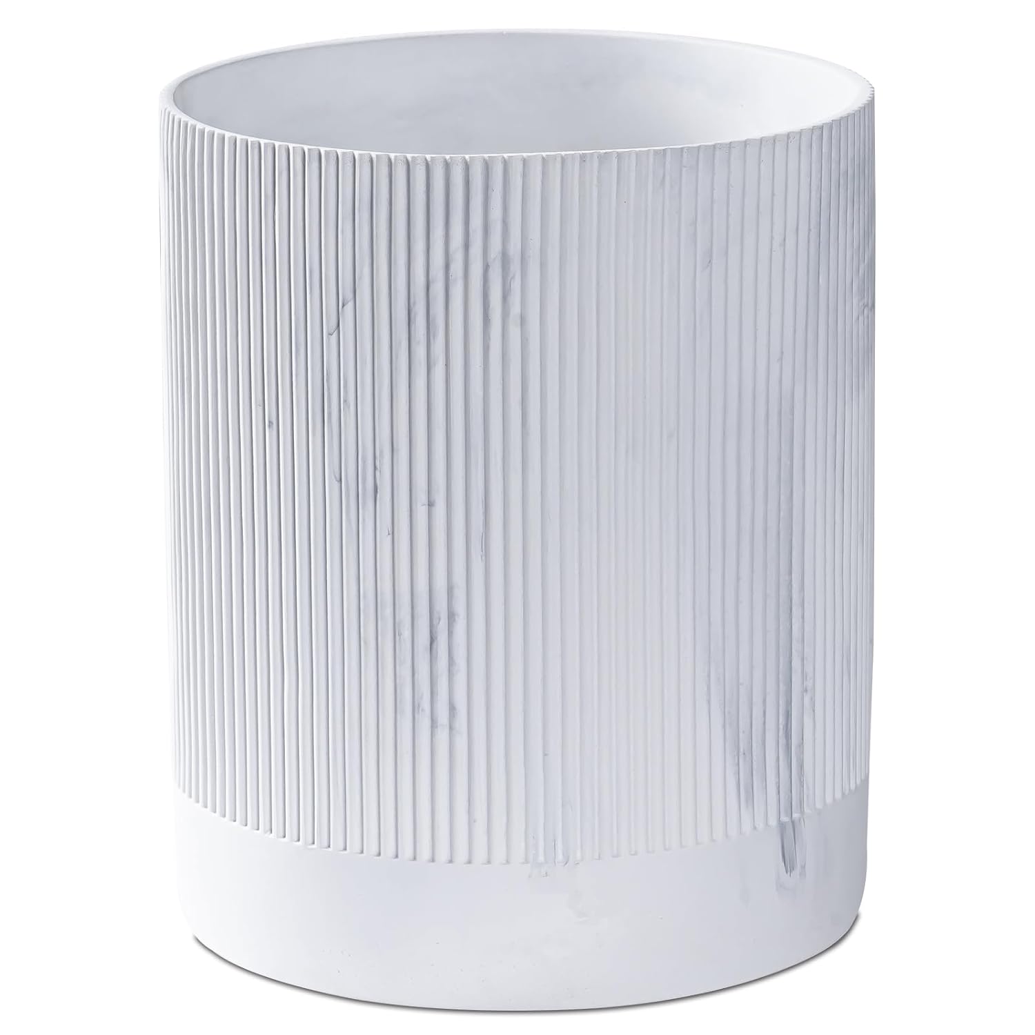 Polytree White Marble Stripe Wastebasket,Round Bathroom Trash Can 2.5 Gallon(9 Liter) Small Kitchen Garbage Can,Living Room Bedroom Trash Can, Decor Wastebasket for Home Office Marble Stripe