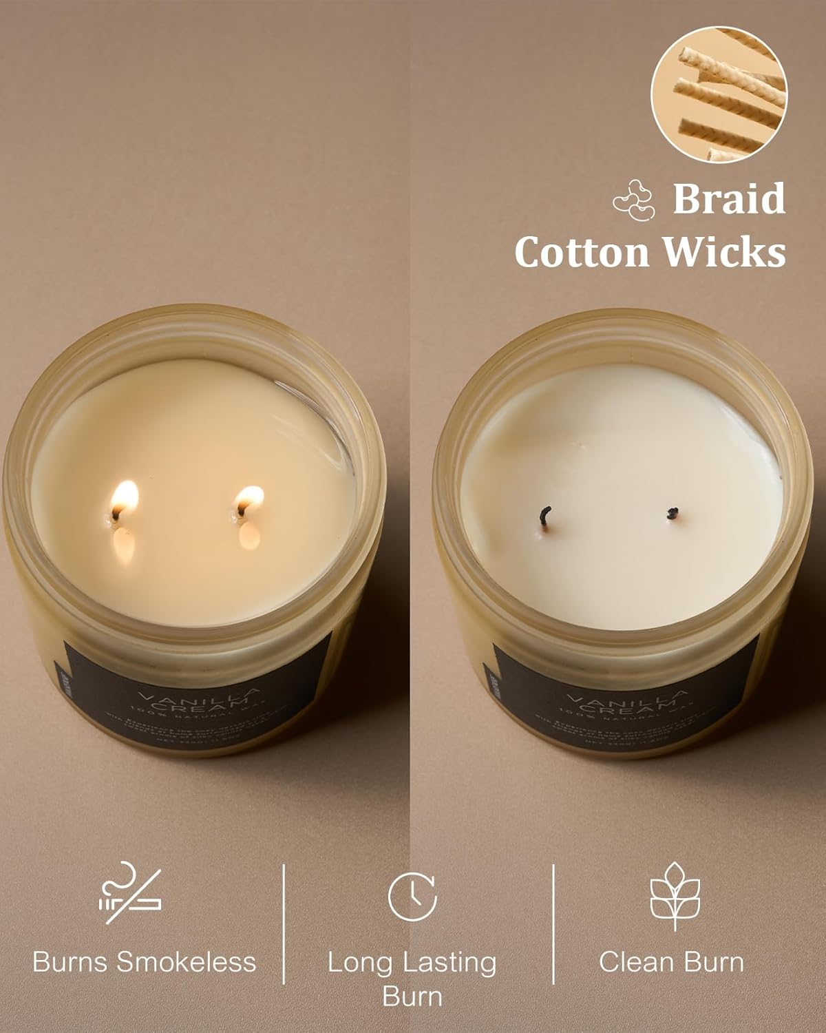 - š³ Clean Consistent & Even Burn - Using 2 American made lead-free cotton wicks for a even burn result. They're cotton flat braid wicks with paper throughout, providing increased rigidity and burn more consistently than 100% cotton wicks. Designed to reduce carbon buildup which leads to black soot.