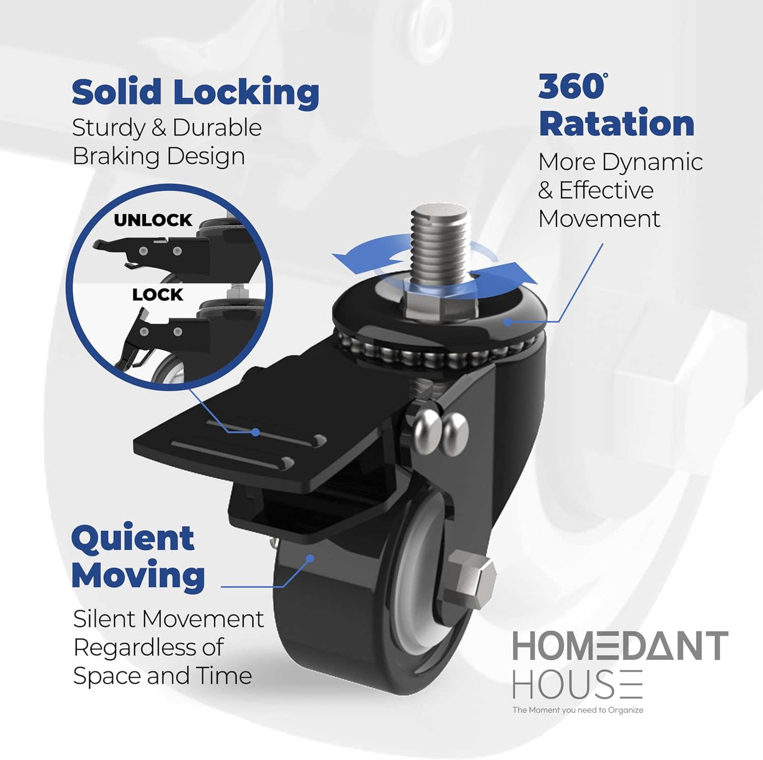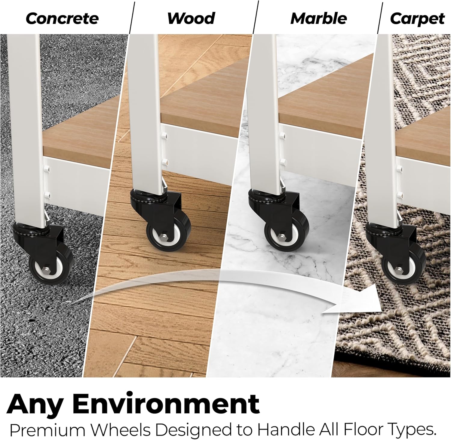HOMEDANT House White 5-Tier Metal Rolling Cart Shelf Rack Casters Heavy Duty Wheel Shelving Unit Adjustable Utility Storage Shelves Organizer Shelf Kitchen Garage 24.4" W x 16.5" D x 62.2" H 2Pack