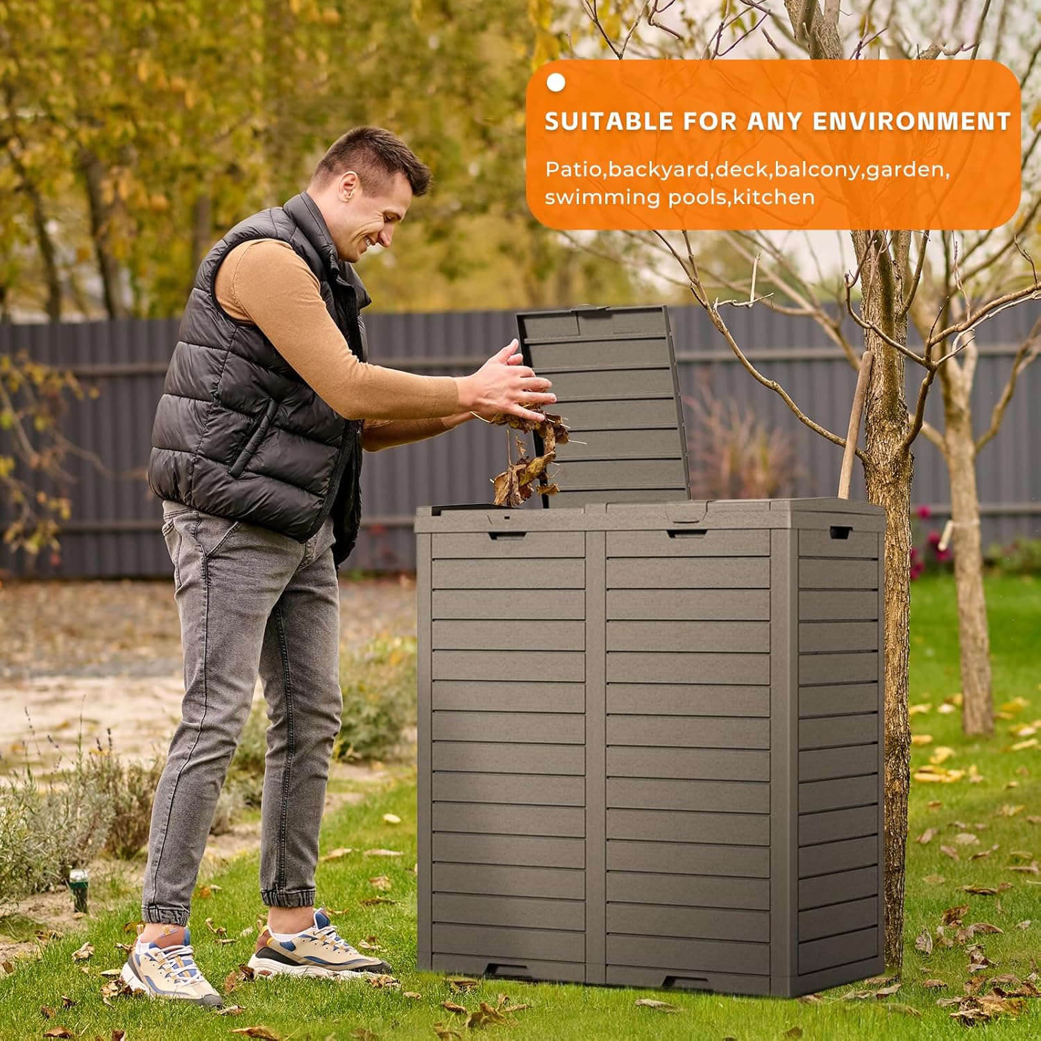62-Gallon Outdoor Trash Can with lid, Waterproof, UV-Resistant Resin Garbage Can, Lockable Lid and Drip Tray, Animal-Proof, for Patio, Kitchen, Backyard and Deck