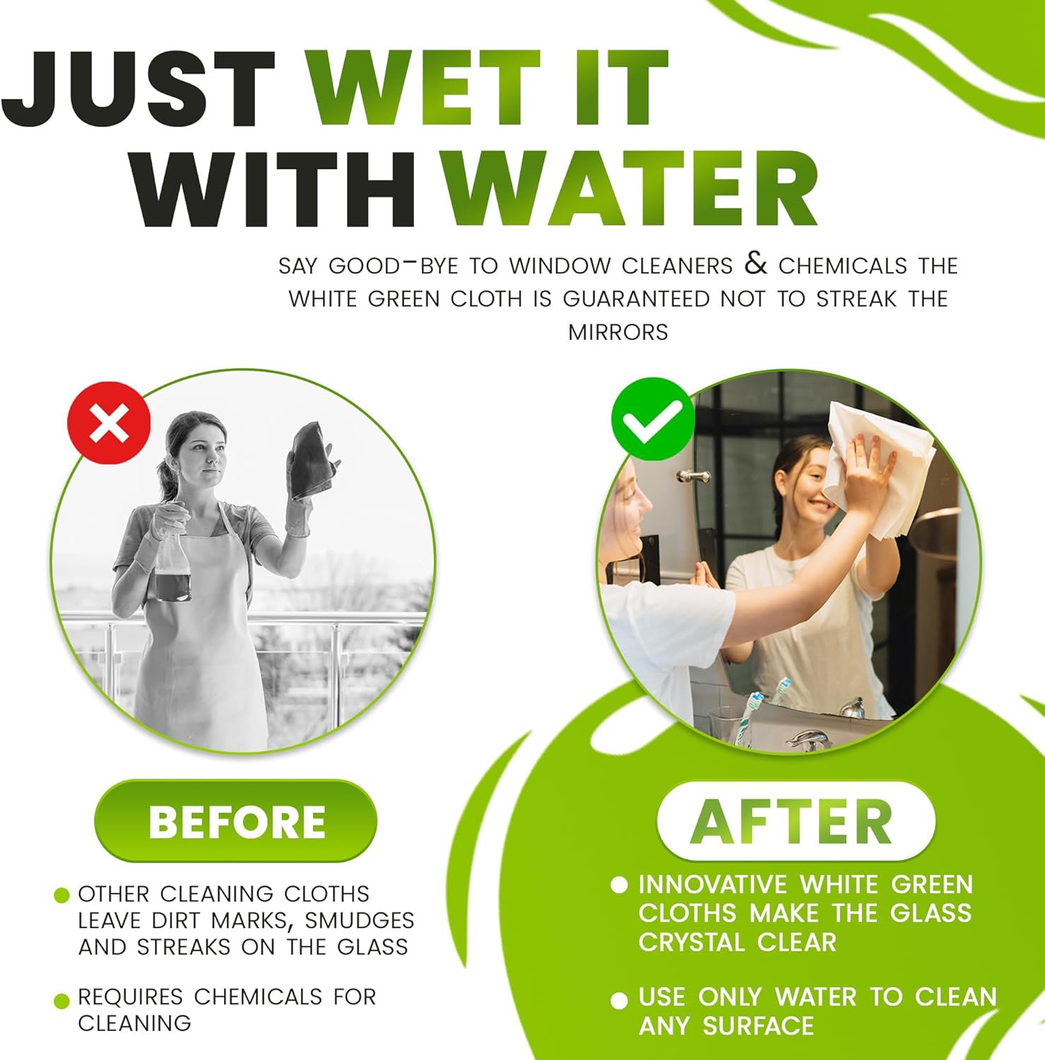 - Chemical-Free Cleaning: Simply add water—no harsh chemicals or sprays required—to reveal a spotless finish every time.