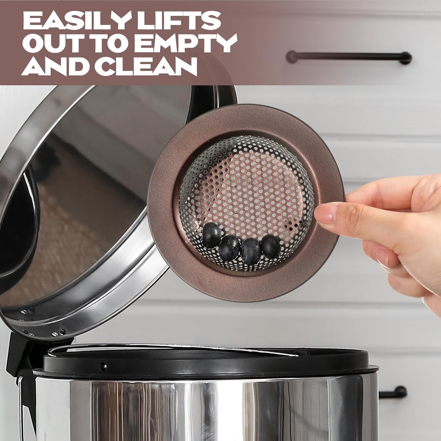 - Elegant Oil Rubbed Bronze: this kitchen sink strainer is designed in oil rubbed bronze style, which is eye catching and beautiful, easily matching with your kitchen and bathroom decoration, simple yet beautiful, adding a sense of exquisiteness to your house