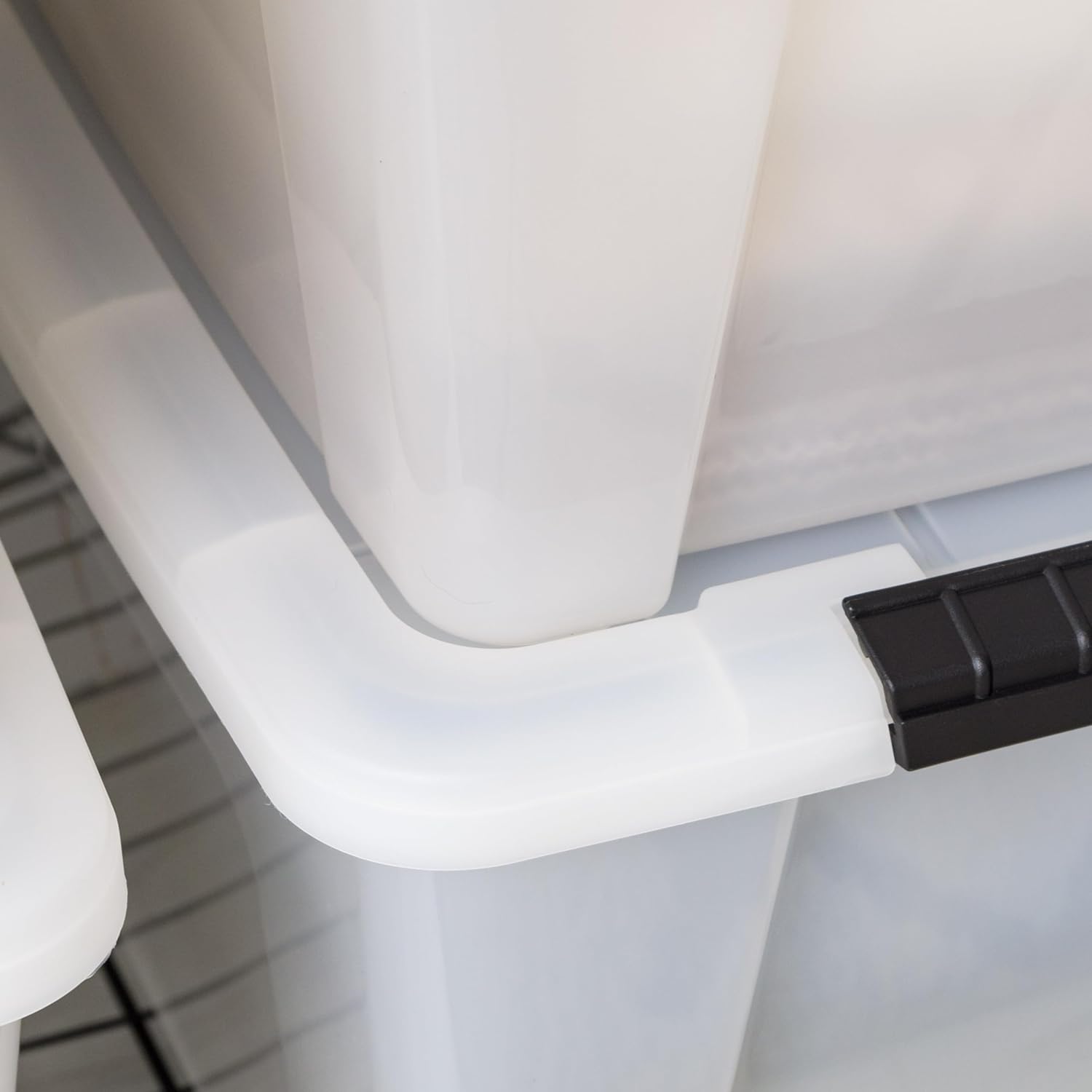 IRIS USA 13.5 Qt Stackable Plastic Storage Bins with Lids, 8 Pack - BPA-Free, Made in USA - Discreet Organizing Solution, Latches, Durable Nestable Containers, Secure Pull Handle - Pearl