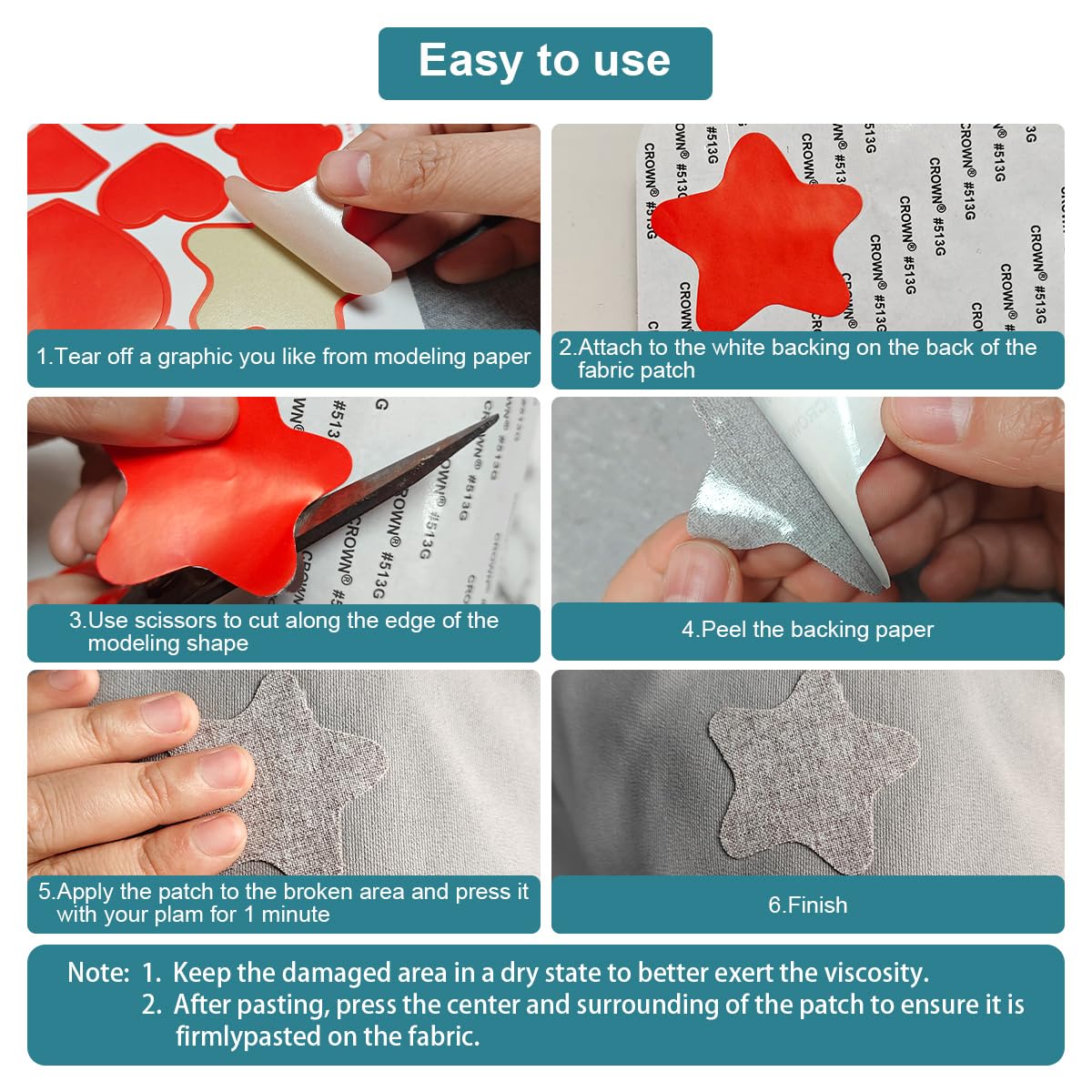 - EASY TO USE: Instructions are provided, simply peel off the linen adhesive patch backing paper and then apply the repair patch to holes, cracks and stains on linen sofas, car seats or other linen products. It only takes a few seconds to complete the repair work, and the glue reaches its best effect after 24 hours of resting!