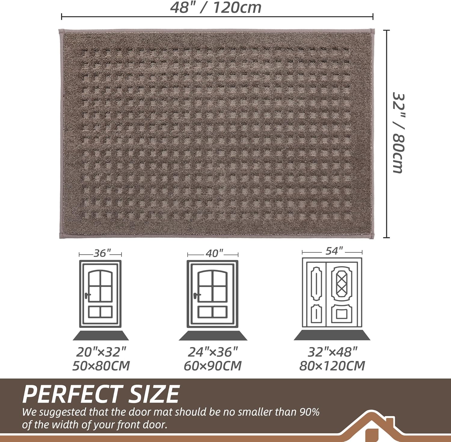 - Stylish and Low Profile Design: Fashionable Waffle patterns are suitable for most kinds of home dΓ©cor. Our doormats measure 32" x 48" x 0.45", low-profile design and reinforced overlock edges to ensure that doors won't get stuck or the door rug go curling. Note: Please confirm the height of the door gap before purchasing