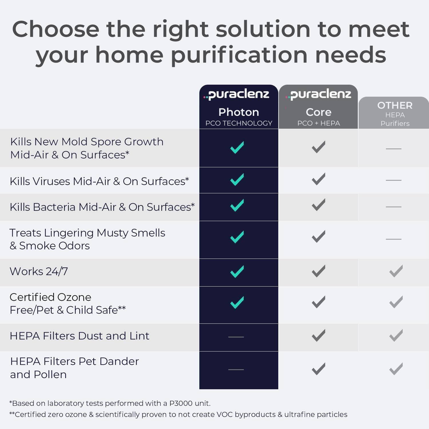 Puraclenz Photon P3000X Air Purifier for Home, Air & Surface Purification, Up to 3000 sqft, Removes 99% Pollutants, Mold, Odors, Viruses, & More, Ozone-Free (White)