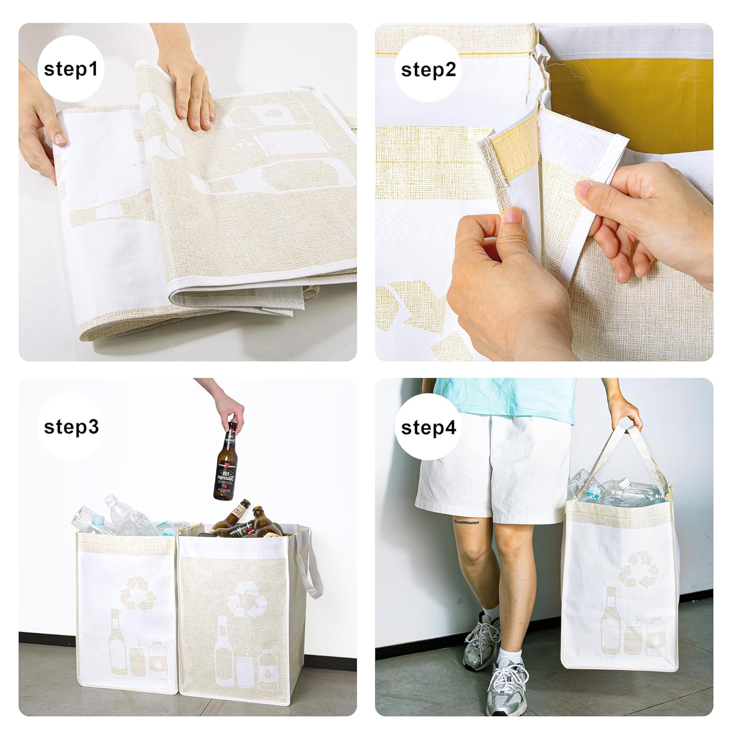 - Premium Material: Our recycling bins are made of high quality polypropylene, which is waterproof, easy to clean and sturdy for a long service life! Weighing capacity is enhanced by double-stitched carrying handles, making the recycle bins for kitchen bag more easy to use
