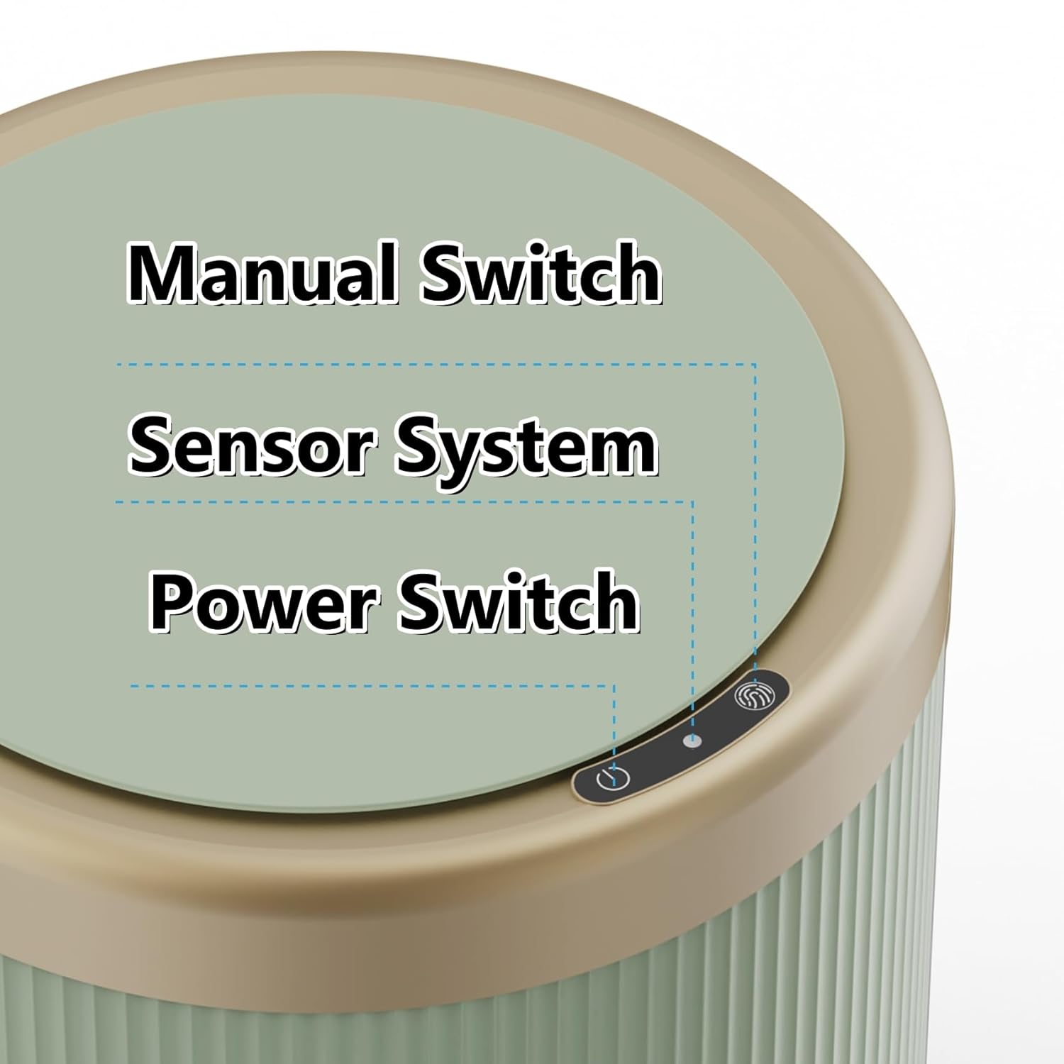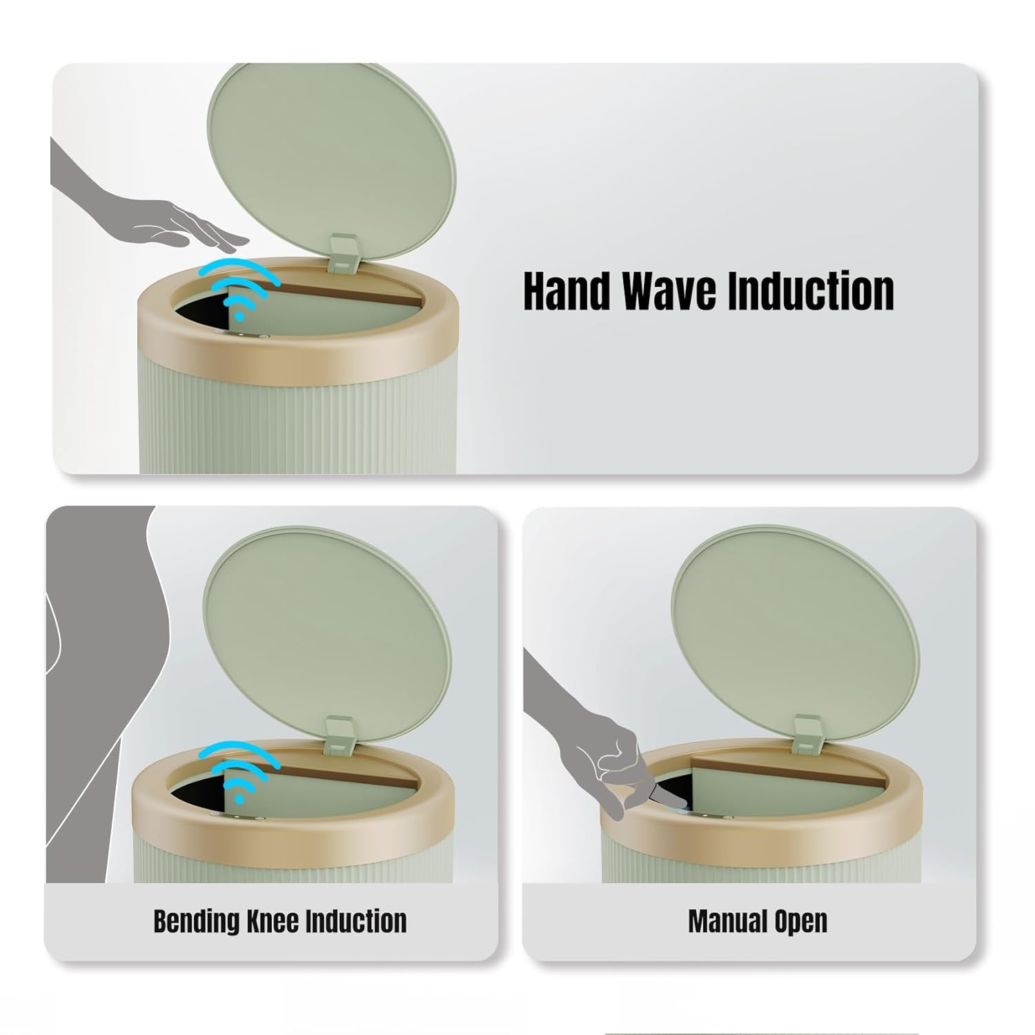 URALFA 3.7 Gallon Automatic Motion Sensor Bathroom Trash Can with Lid, 14 Liter Touchless Trash Bin, Smart Dog Proof Garbage Can, Small Waste Basket for Toilet, Office, Bedroom (Green)
