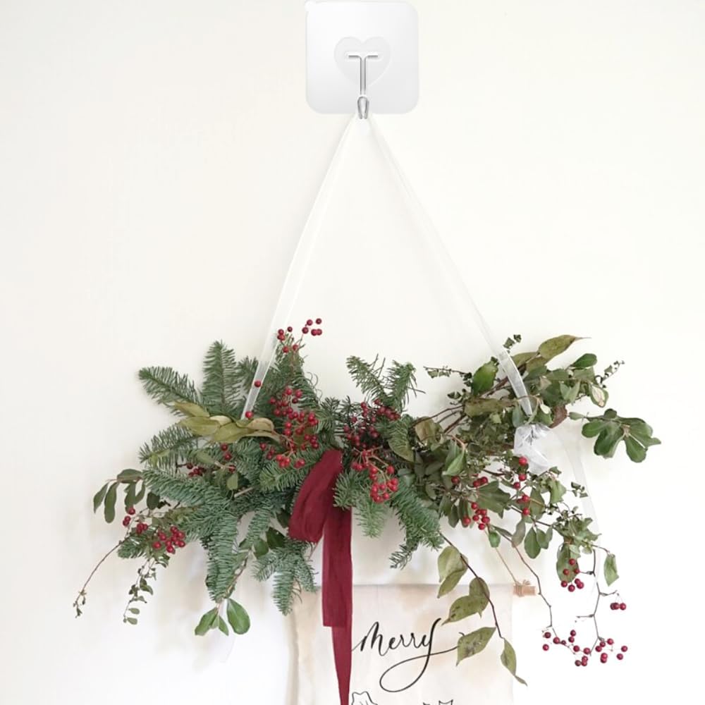 - The adhesive hook unique transparent heart-shaped design, perfect stylish appearance suitable for modern decoration, clear wall hooks adhesive can be used in bathroom, kitchen, living room, office, behind door, entrance, etc, clear sticky hooks for hanging heavy duty bringing convenience to your life.