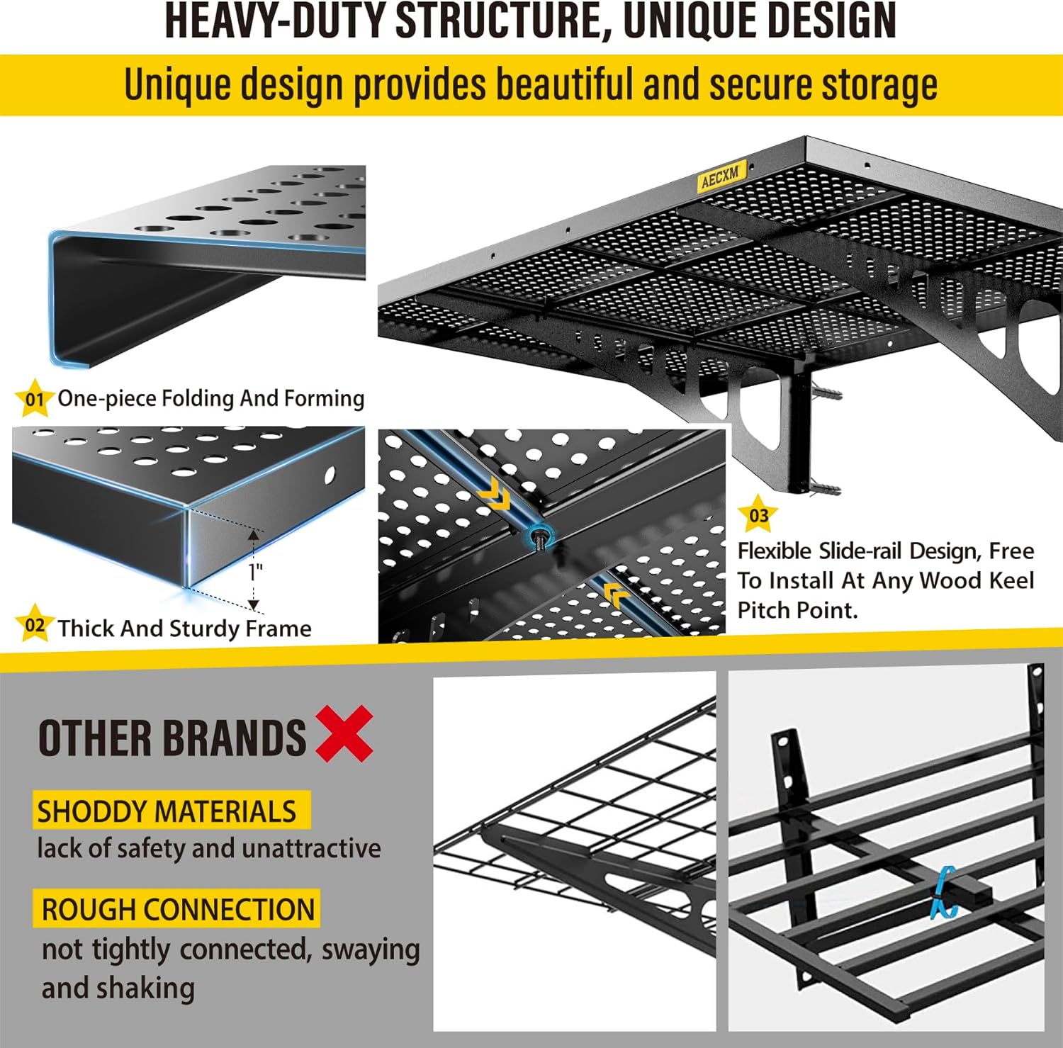 - Premium Craftsmanship: This garage wall shelving is crafted from a single steel sheet, precision-stamped and folded for strength. Unique high-density hole design enhances functionality while delivering a sleek, modern aesthetic