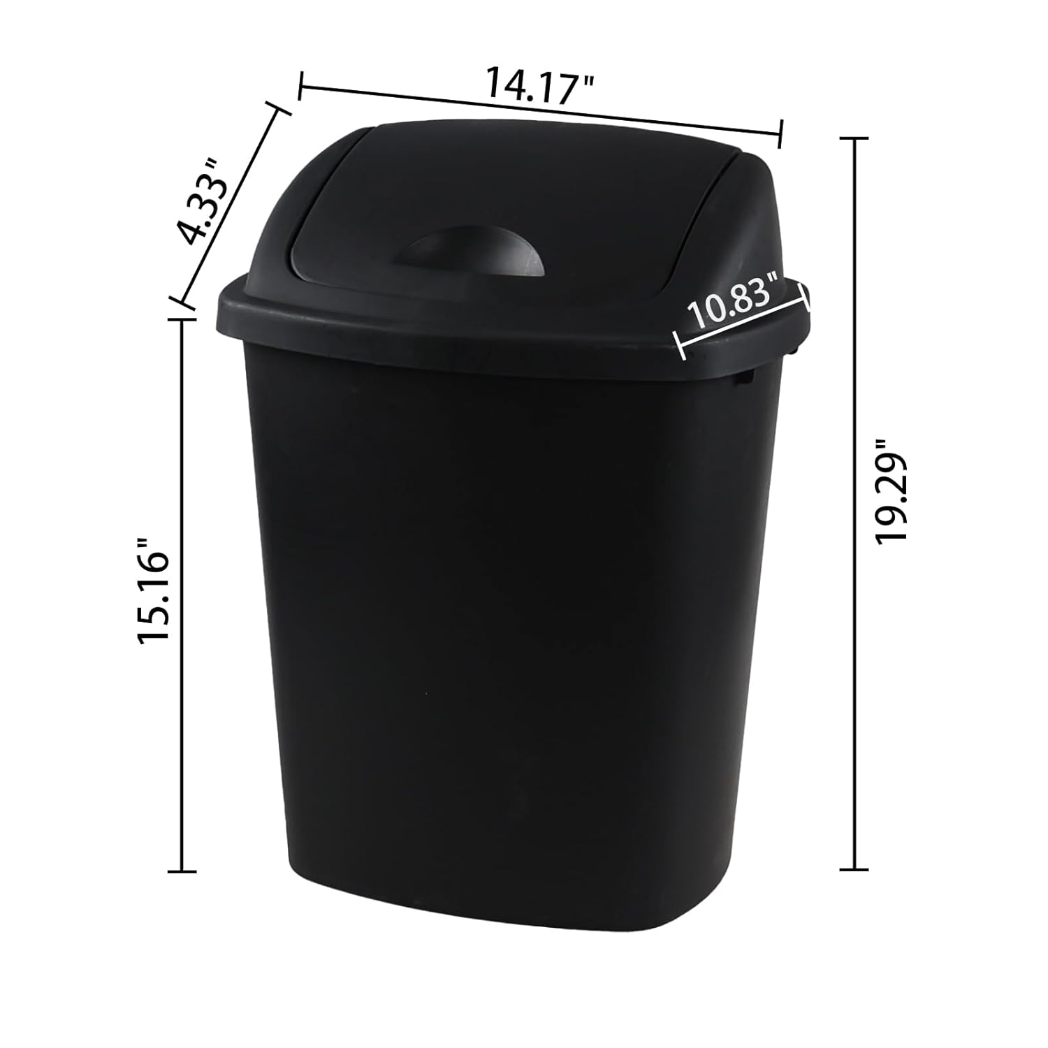 Bringer 6 Gallon Swing Top Trash Can, Plastic Garbage Can with Swing-Lid, Black, 4-Pack