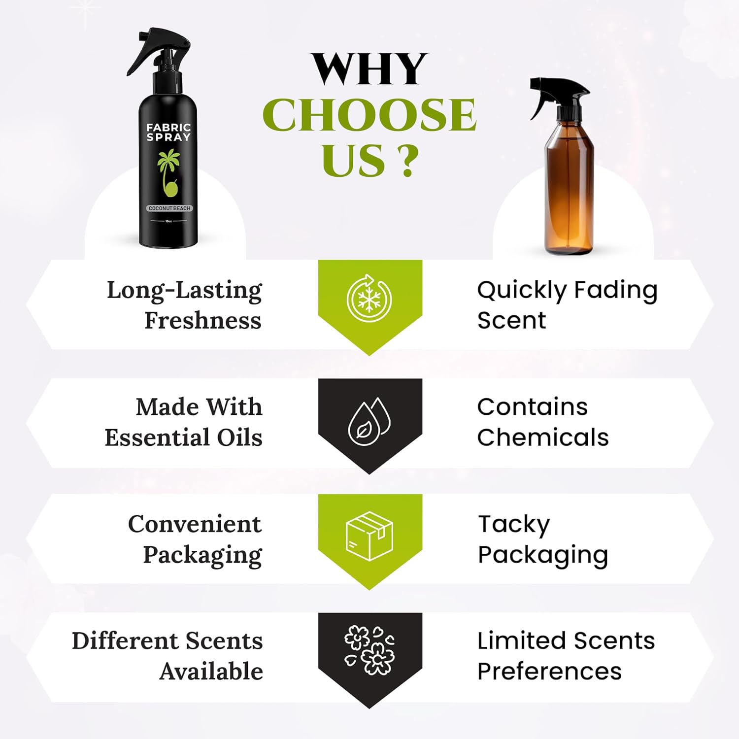 - MADE WITH ESSENTIAL OILS: Our Fabric Refresher Spray is more than just any other Frabric Spray for linens. It is a unique blend of essential oils that help you relax and clear your head.