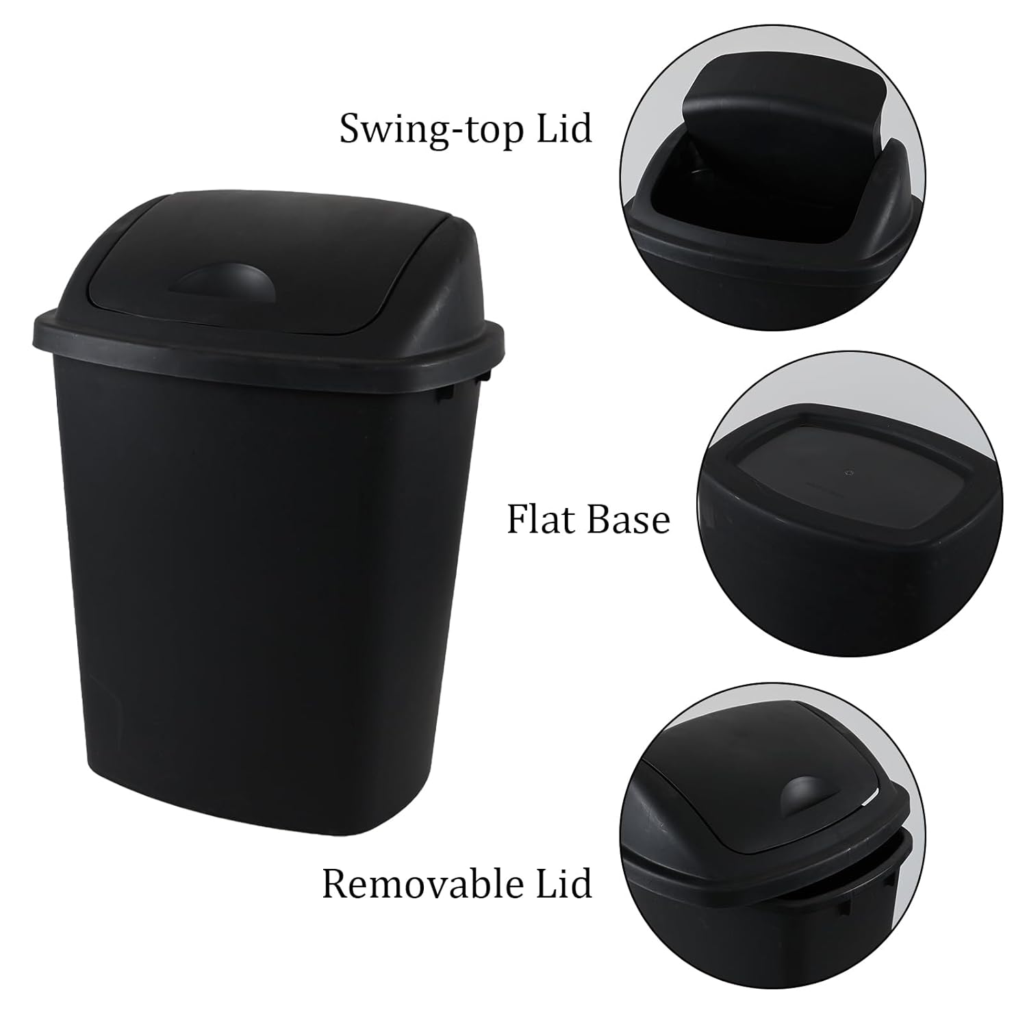 4 Packs Commercial Heavy-Duty Trash Can with Lid, Plastic Swing Top Kitchen Trash Can (11 Gallon, Black)