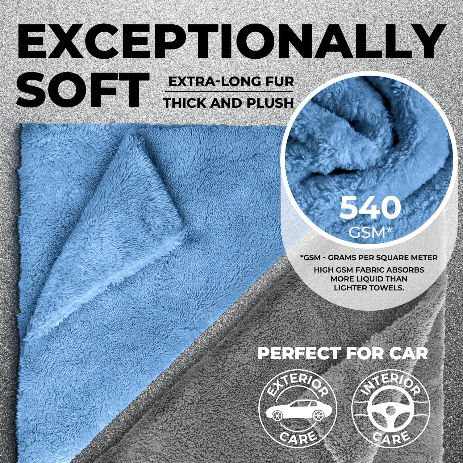 Edgeless Microfiber Towels for Cars – 6pk (12”x12”) - 540 GSM - Super Soft Detailing & Buffing – Scratch-Free & Absorbent Microfiber Cleaning Cloths for Car Polishing