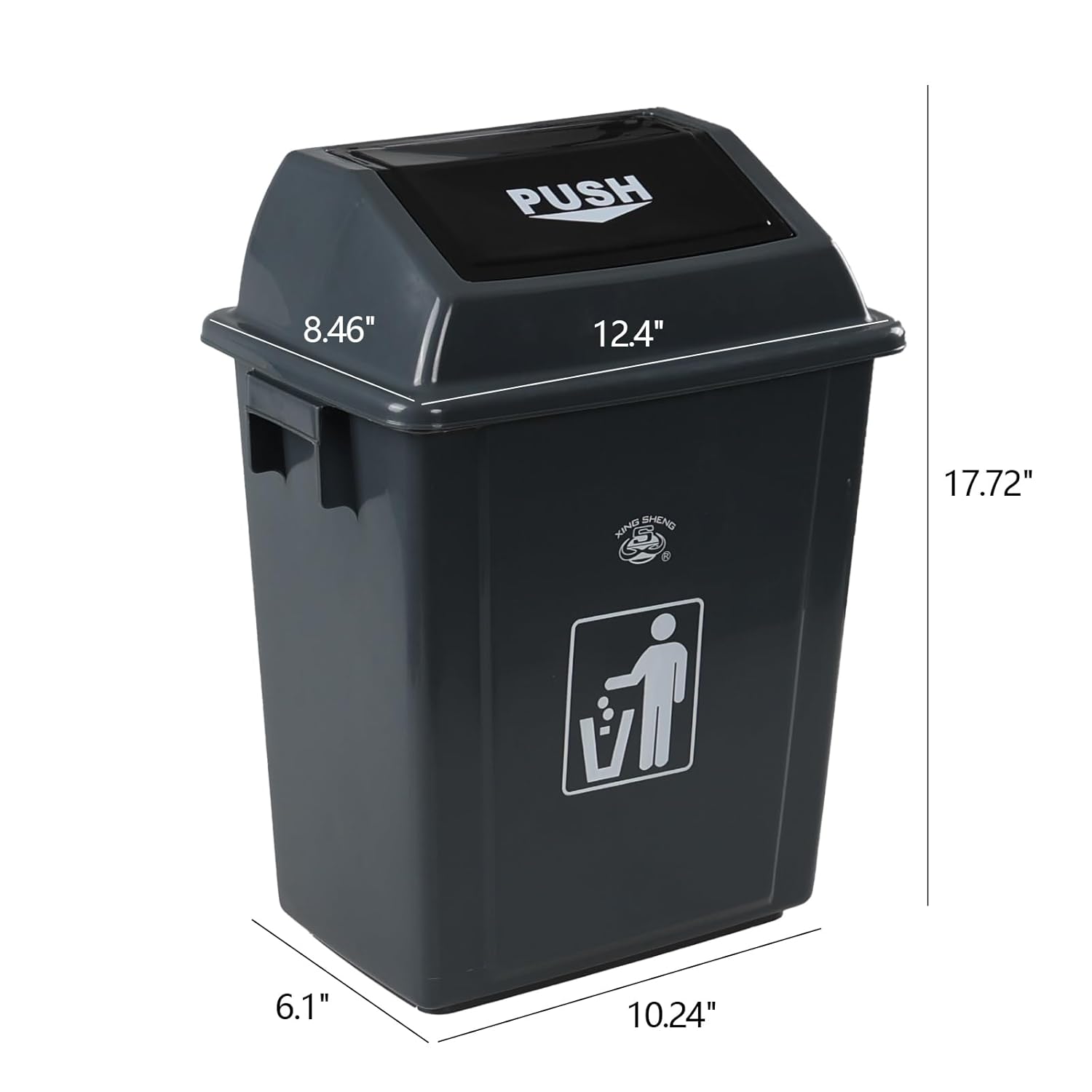 - Package contains 4 pack 6 gallon plastic swing lid kitchen trash can, which with dark gray bin's body and black swing top lid