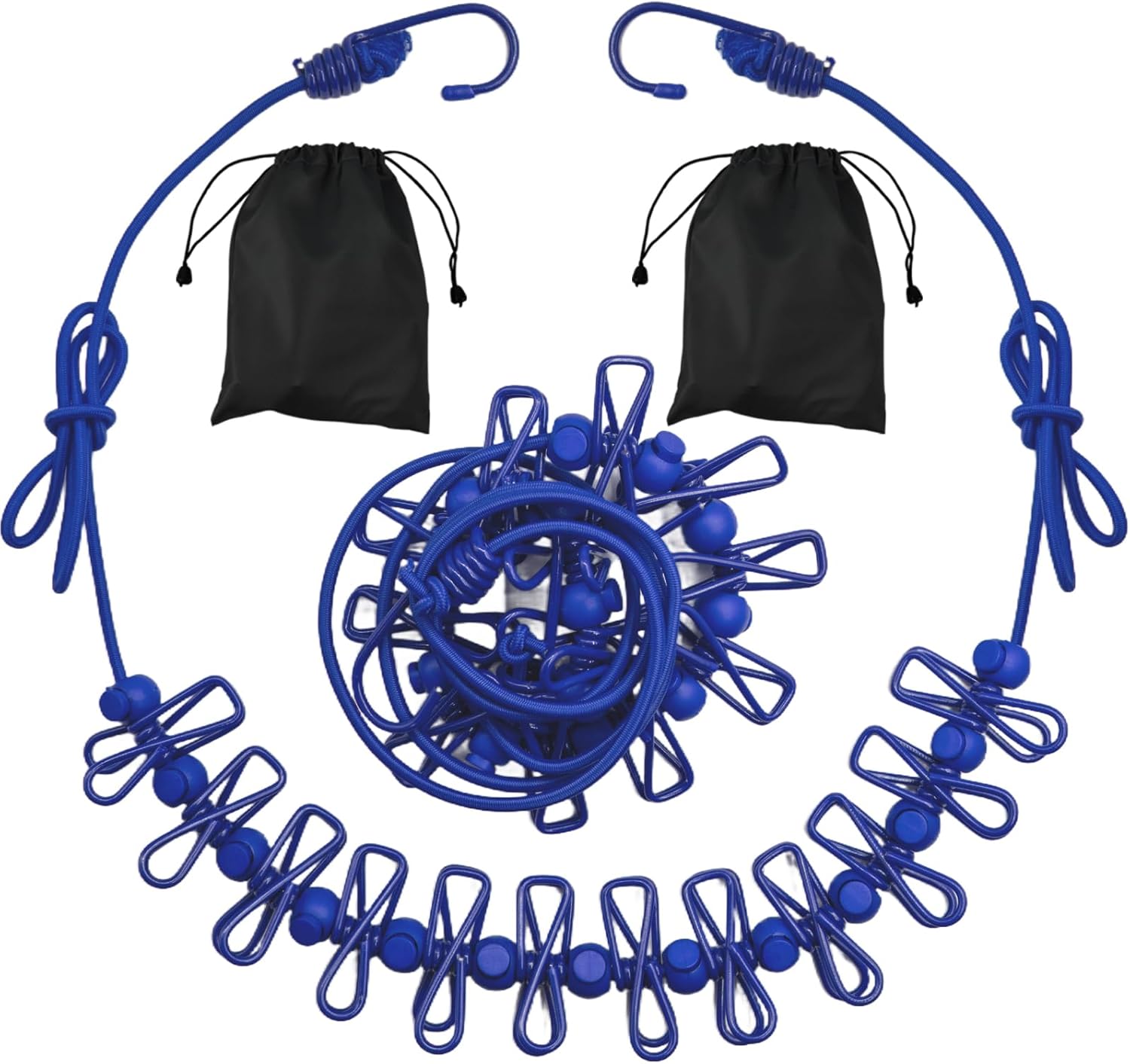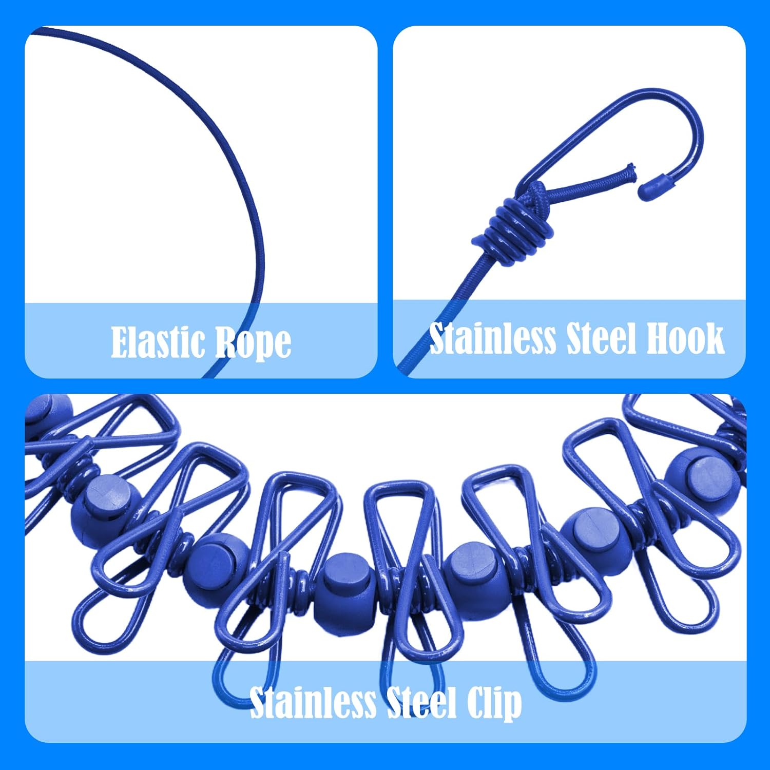 - [Innovative Design] The travel clothesline features 12 clothesline clamps and 13 windproof, non-slip clamps, all designed with a positioning bead. Our sturdy elastic rope supports heavy clothing more effectively than other clotheslines.