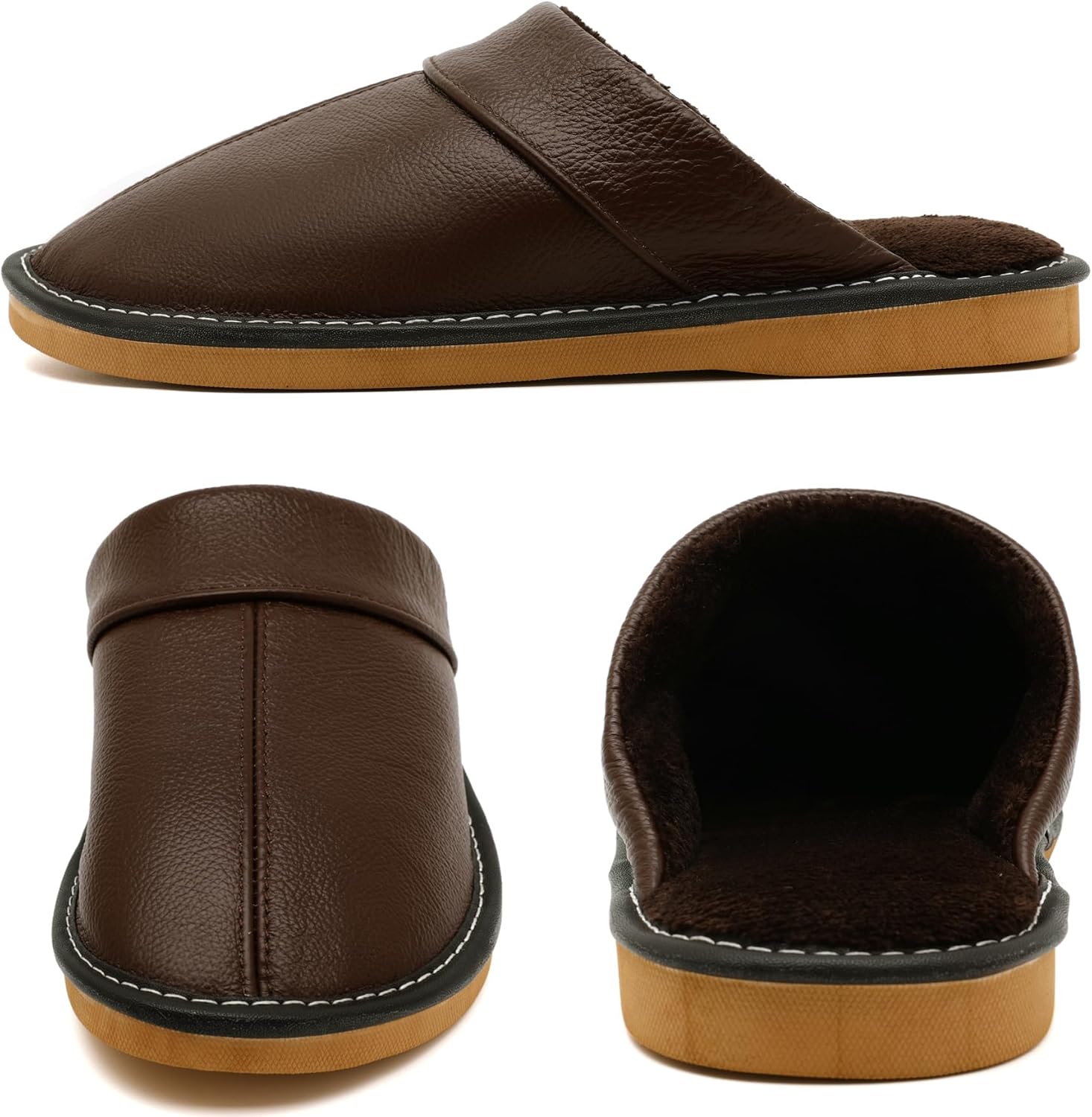 - 【Non-slip Sole】The thermoplastic rubber outsole of these leather slippers is robust and non-slip. And the additional padding on the heel makes these leather slippers soft.