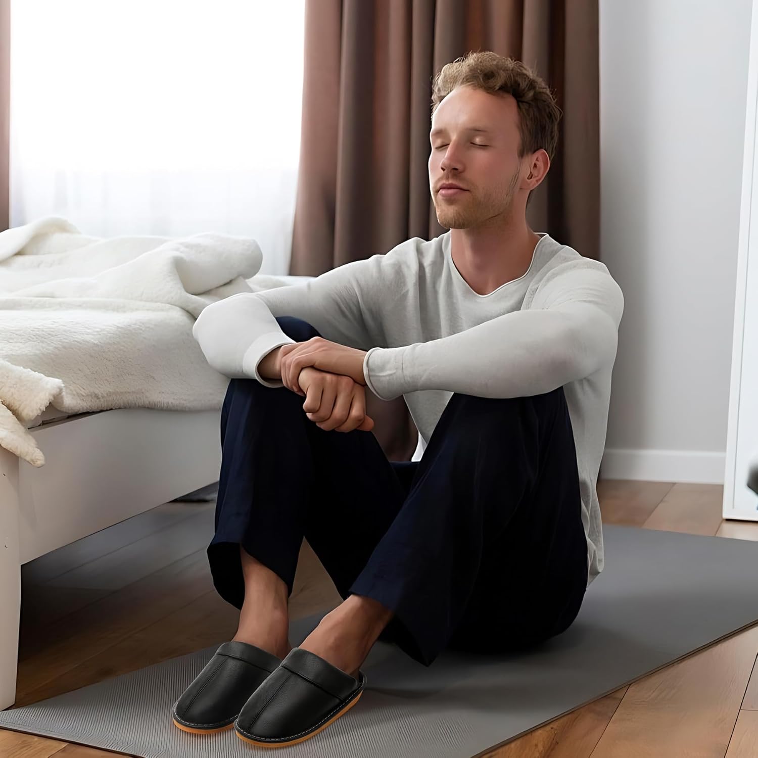 - 【Non-slip Sole】The thermoplastic rubber outsole of these leather slippers is robust and non-slip. And the additional padding on the heel makes these leather slippers soft.