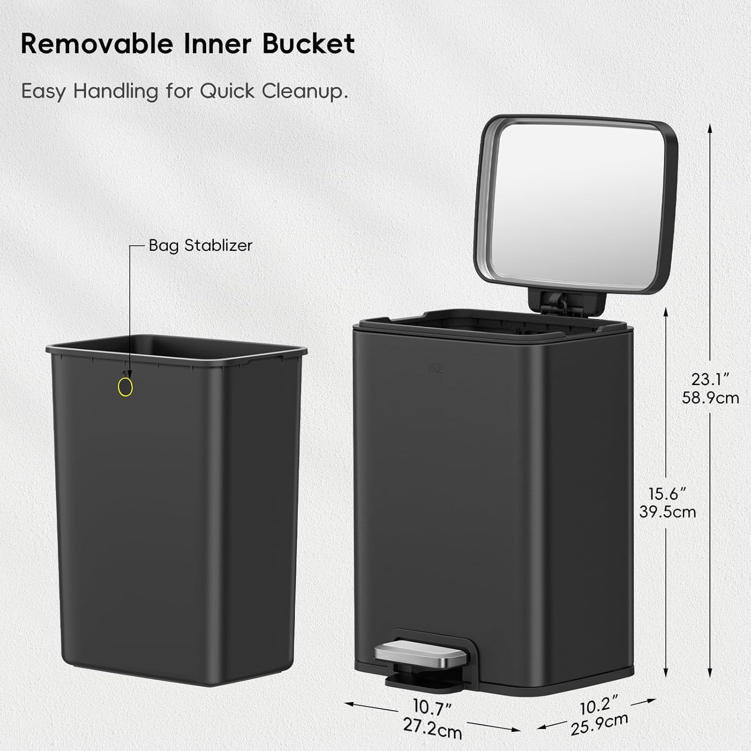 - ANTI-RUST & FINGERPRINT RESISTANT: The stainless steel body resists rust and fingerprints, keeping your trash bin looking new. Easily maintain its cleanliness with just water and a cloth.