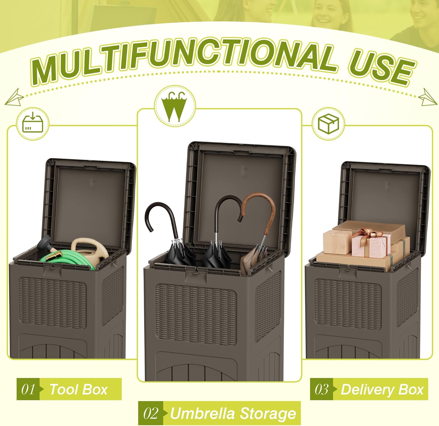 - Multi-Functional Use: This resin outdoor trash can withstand the effects of various outdoor elements, preventing the entry of water and dust. It can also be used as an outdoor storage bin, suitable for patio, swimming pool and other multi-scenario use needs.