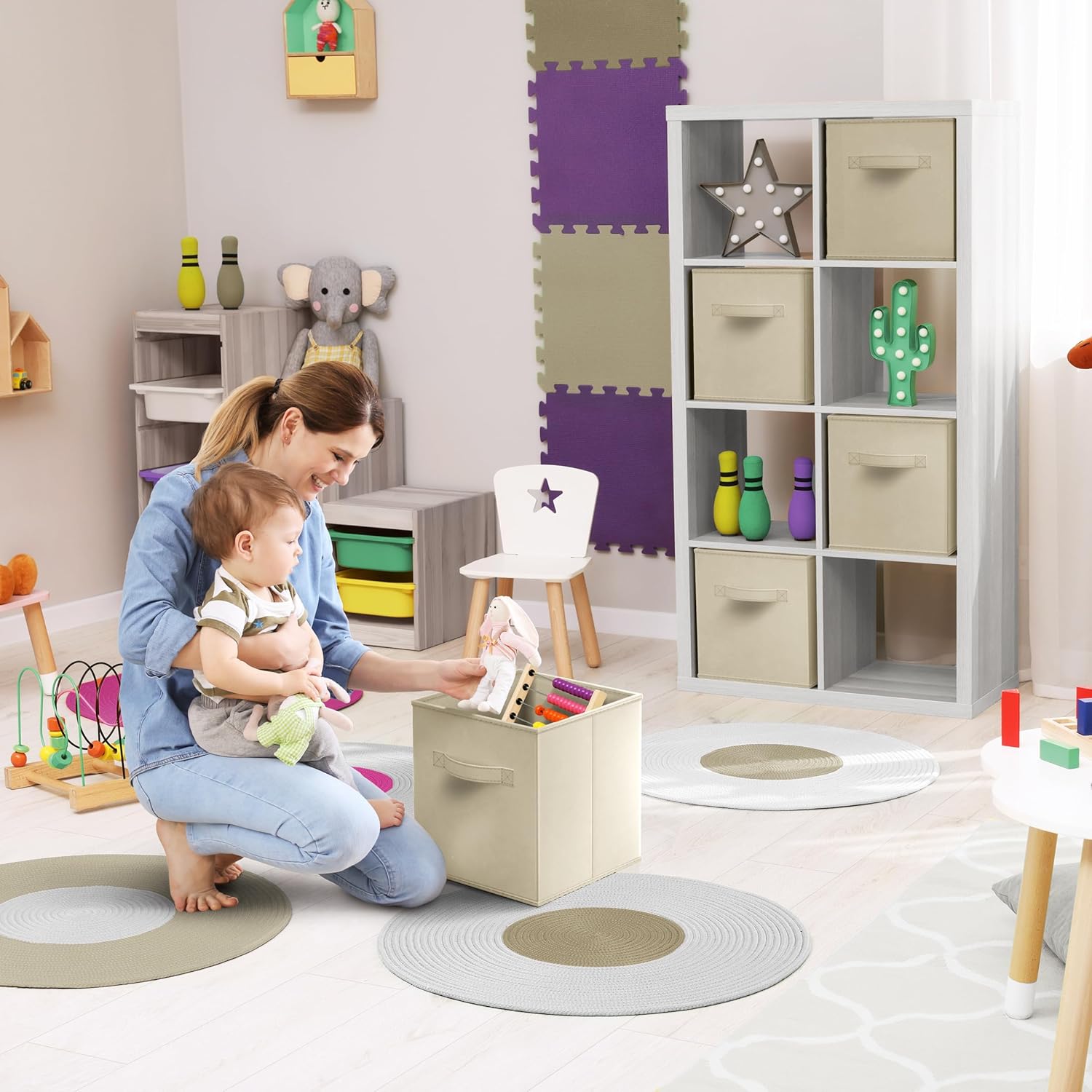 - Versatile Use: Use the Sorbus Fabric Storage Cubes in the nursery, playroom, kid’s room, family room, laundry area, closet, storage room, etc. Sit cubes on the floor, in the closet, bookcase, shelving area, cubbies, dorm room, and more.