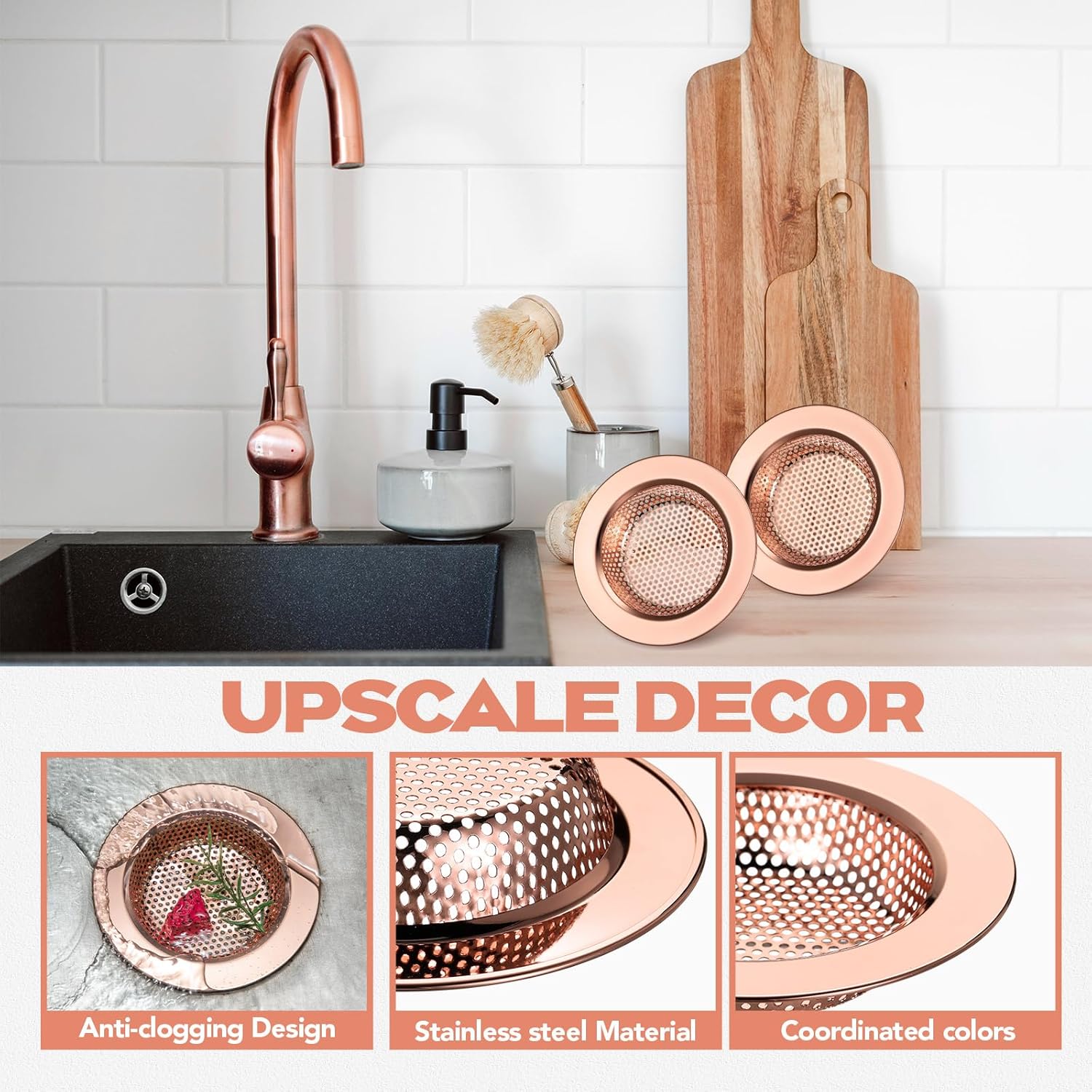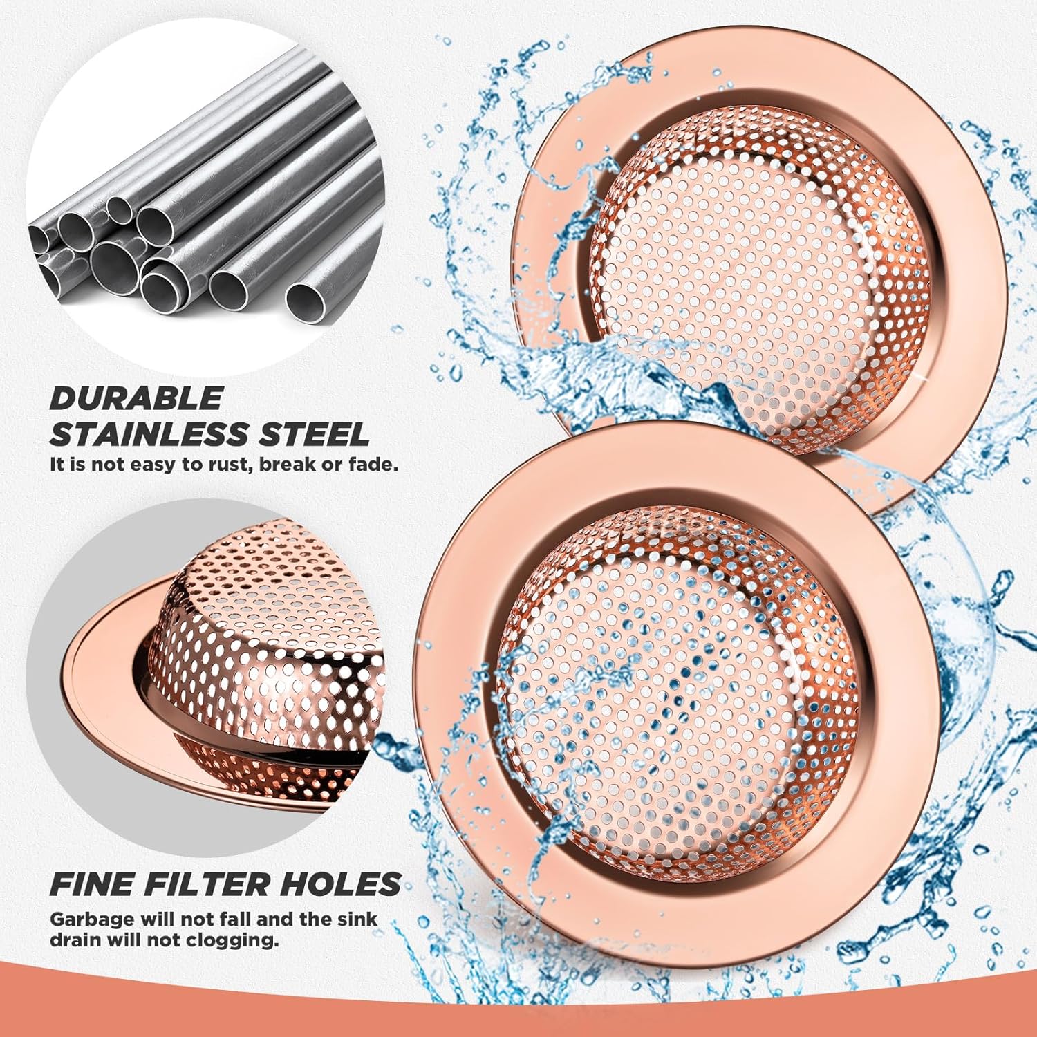 - Elegant Rose Gold: this kitchen sink strainer is designed in rose gold, which is eye catching and beautiful, easily matching with your kitchen and bathroom decoration, basic yet beautiful, adding a sense of exquisiteness to your house