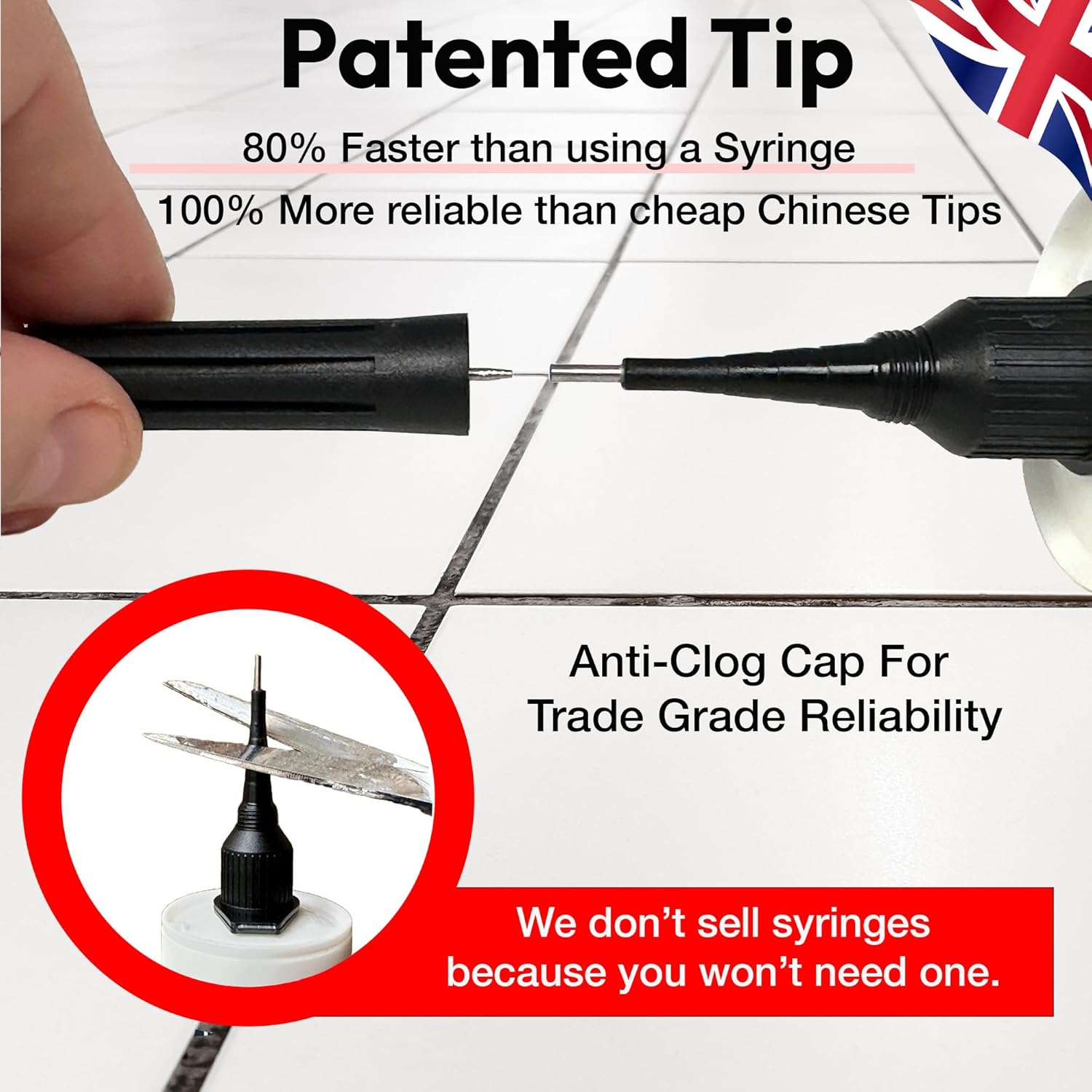 Precision 300ml from Floor-Fix Pro - Fix Loose Tiles - for Loose & Hollow Tiles, Wood, LVT & Laminate - Includes 1.9mm Syringe Tip - Adjustable to 6mm + Anti-Clog Performance (1)