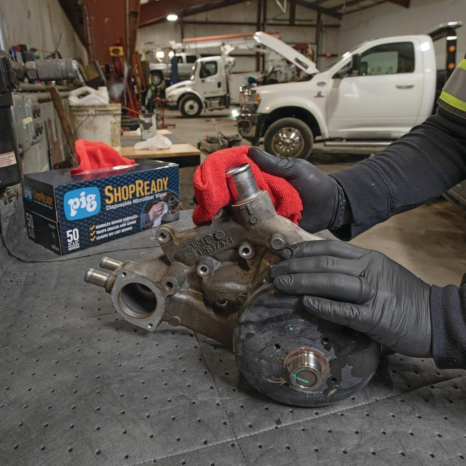 PIG ShopReady Microfiber Wipers| Durable Low-Lint Microfiber Rags | 50 per box | 12" W x 12" L | Red | PM50808-RD