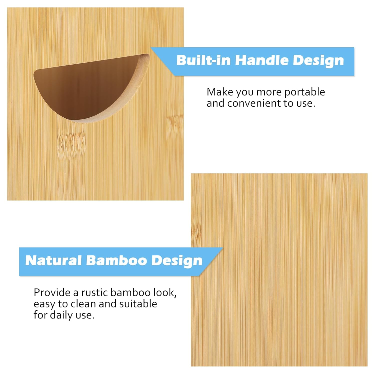 MOOACE Small Wastebaskets 2 Pack, 5 Gallon Trash Can with Handles, Rectangular Waste Baskets Bamboo Garbage Can for Bathroom Kitchen Living Room Office Decorative Under Counter