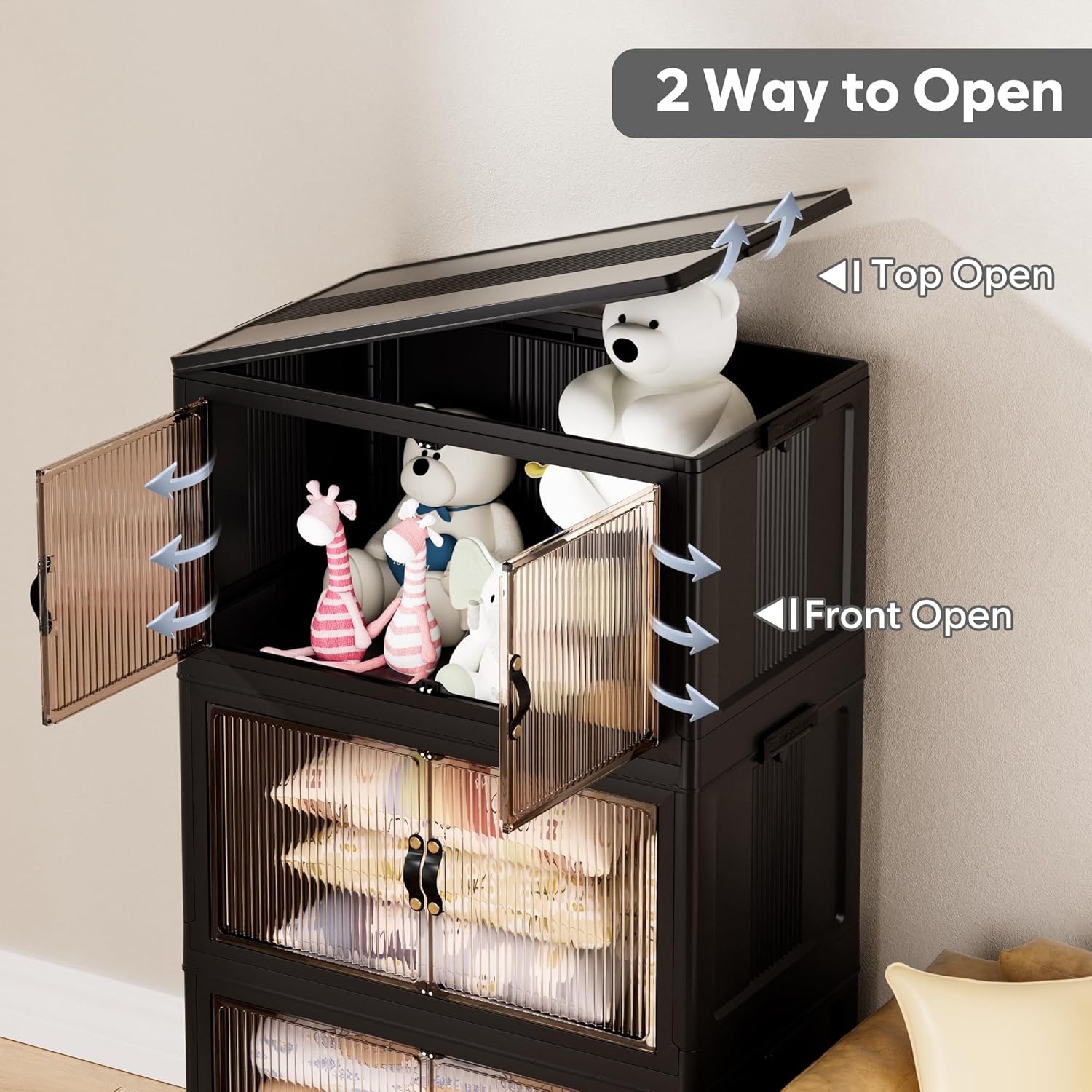 - 【Magnetic Doors & Rotating Wheels】The bins offer two opening options: front or top. The magnetic closure allows easy access. The 4 wheels make them easy to move, ideal for use in storage and organization in any room like your closet or bathroom.