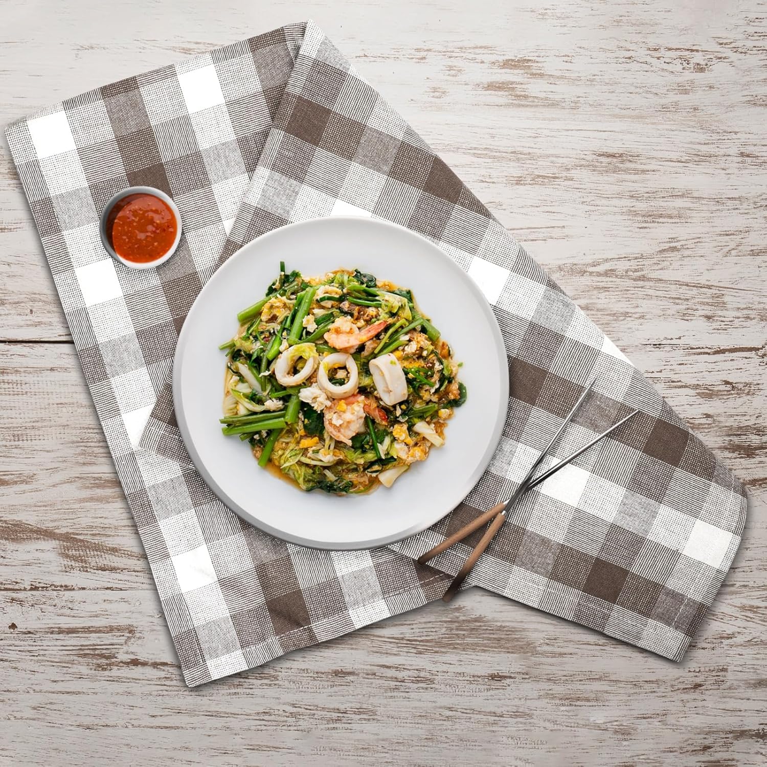 Kitchen Towels Set of 6 Brown/Ivory Checks 20x30 Inches 100% Cotton Highly Absorbent Kitchen Towels Premium Quality Ultra Soft Mitered Corners
