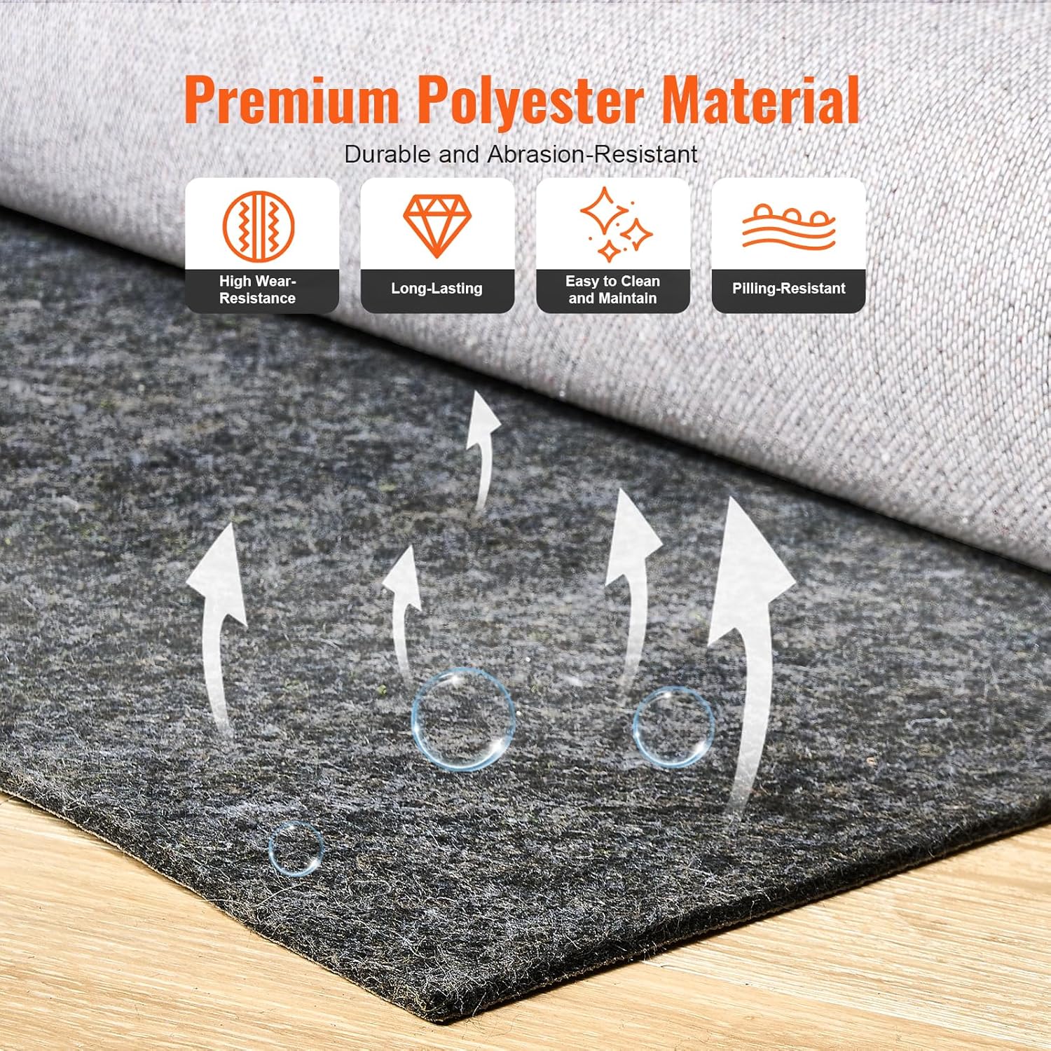 - VEVOR Slip-Resistant Rug Pad, Protective Cushioning Carpet Pad, 2'x8' (7.87' Actual) - 1/4"Thick - Dual Surface - Polyester Felt + Latex, 1-2㎡ Area Carpet Padding Rug Cushion Safe for All Floors, Grey