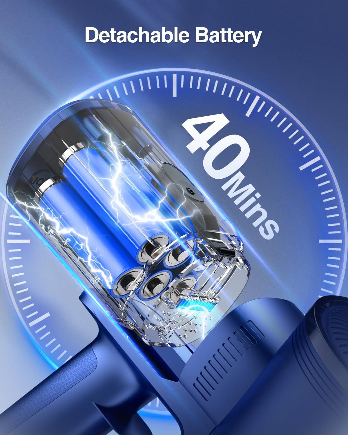 - ă40Mins Running Time and LED DisplayăThe household vacuum cleaners has 6 built-in high-capacity rechargeable batteries, up to 40 minutes of suction, and a built-in protective plate to ensure your safety during use. The cordless stick vacuum has an easy-to-read LED screen that allows you to monitor the power level and adjust the suction power in real time, it is very suitable for large families.