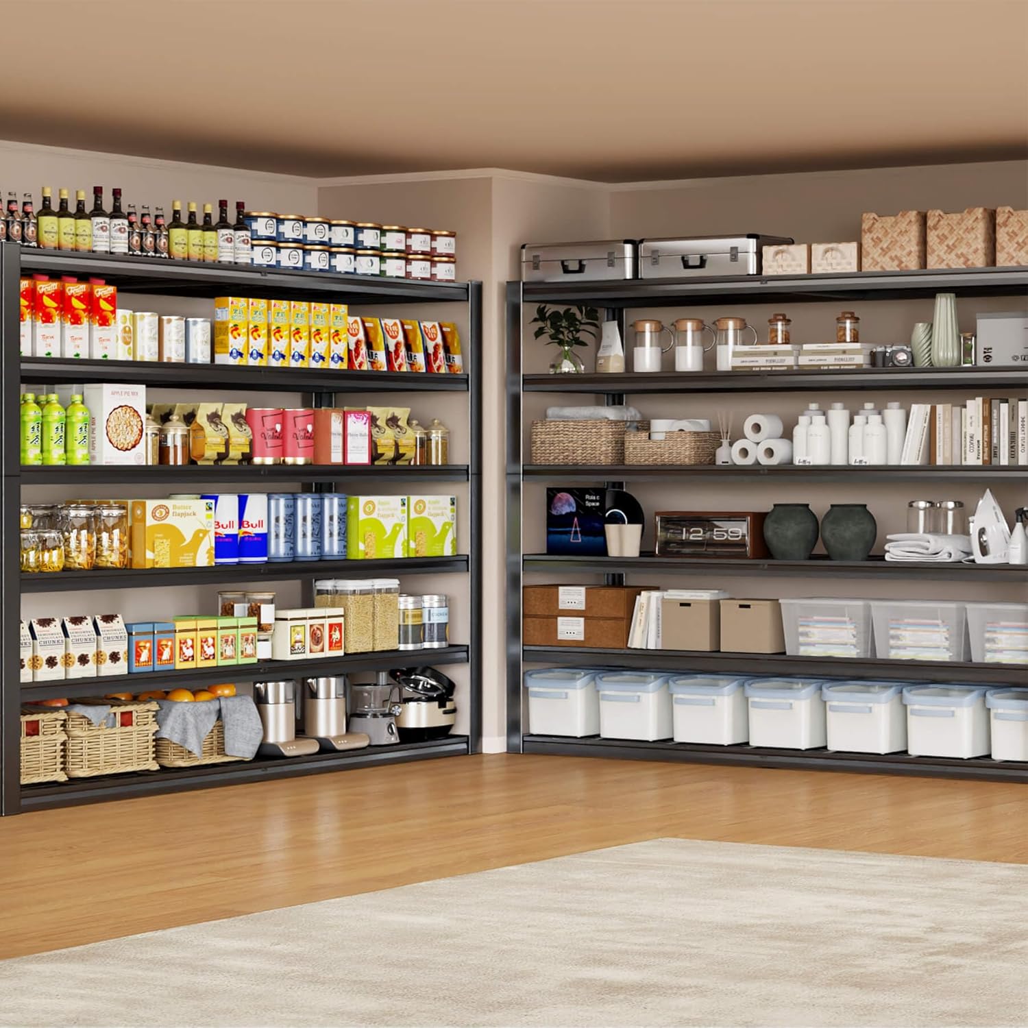 - ăSafer Garage Shelvingă We provide you with a protective cover on the bottom of the garage shelves so you don't have to worry about scratching the floor and a protective cover on the top of the shelves so you don't scratch your arms. This industrial grade metal storage shelf is perfect for use in the home.