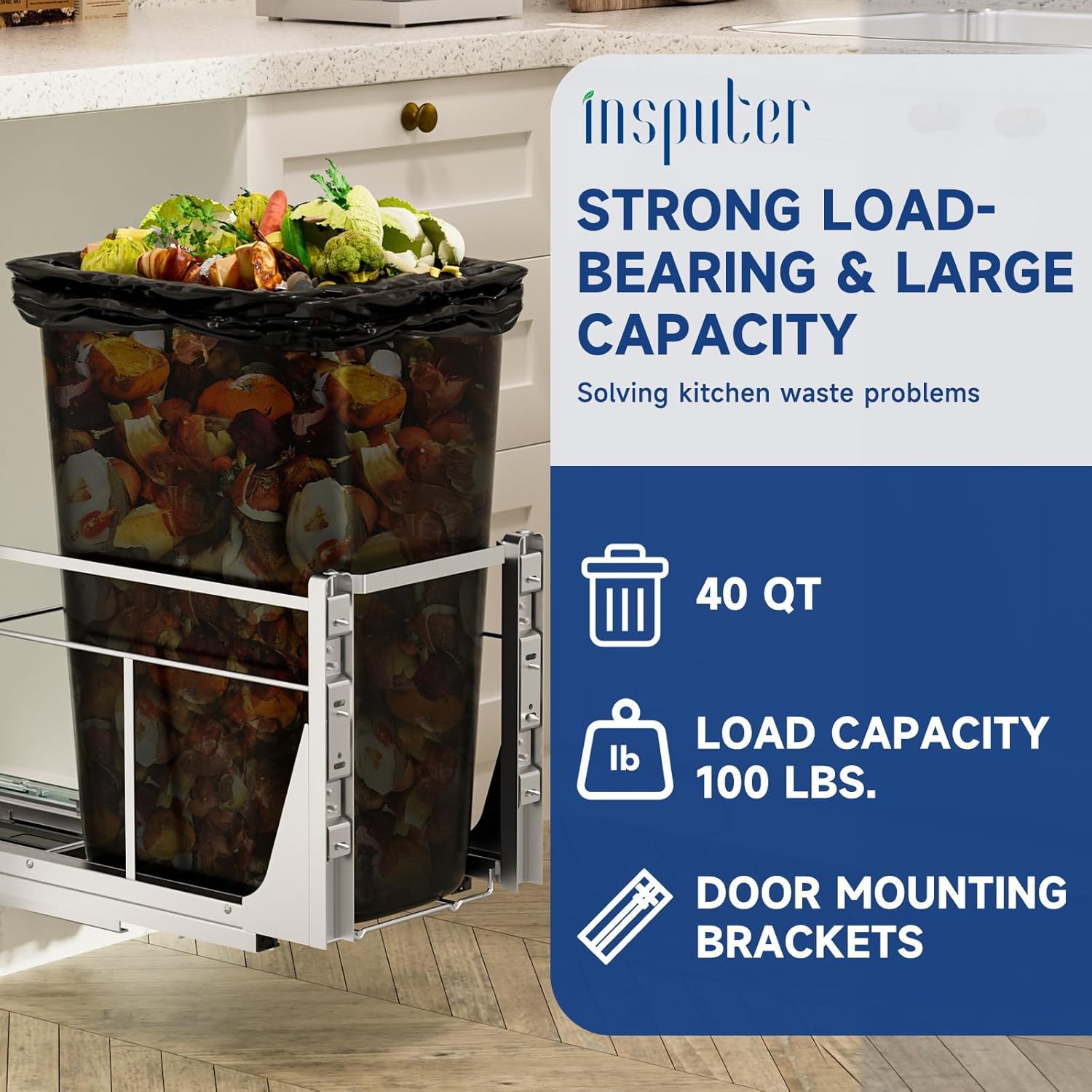 - Soft-closing slides: Don't worry about damaging your cabinets by pushing hard on the doors! Insputer cabinet trash can pullout kit uses better quality damping slides with soft closing function, which has great advantages in reducing noise and running smoothly